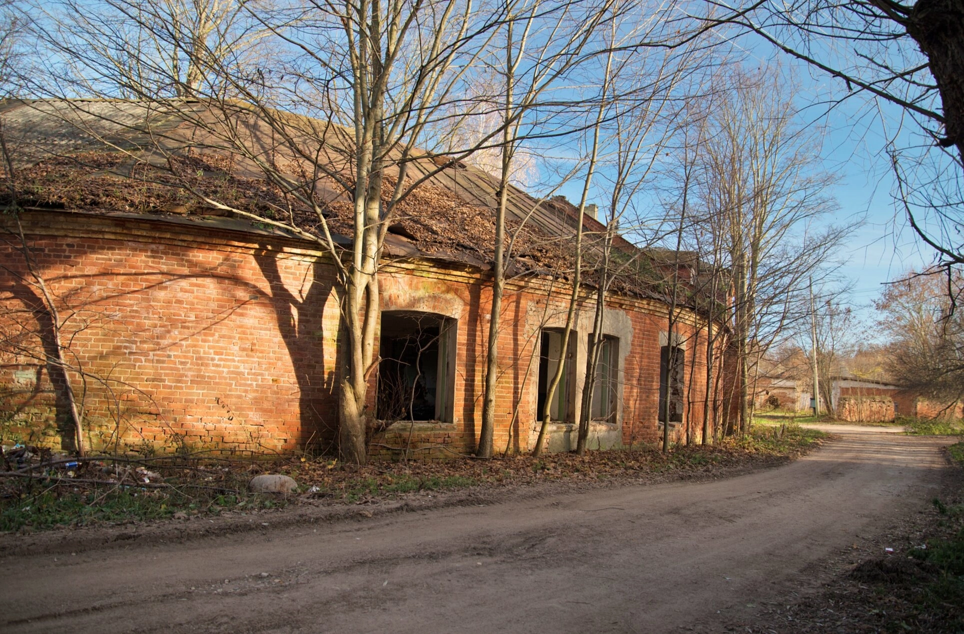 На представленной фотографии запечатлена Спасская церковь, расположенная на территории усадьбы Волышово в Порховском районе Псковской области. Храм находится в полуразрушенном состоянии, что свидетельствует о годах запустения и необходимости восстановительных работ.