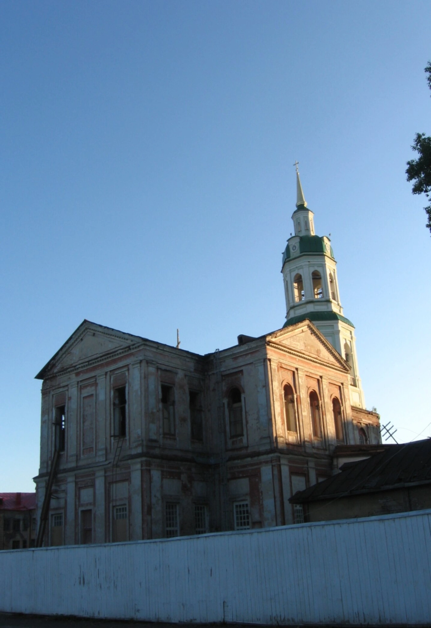 На переднем плане фотографии виден ограждающий соборную территорию белый забор. Слева от собора располагается историческое здание — дом купца Татаурова, одно из первых каменных строений города, возведённое по регулярному плану 1784 года.