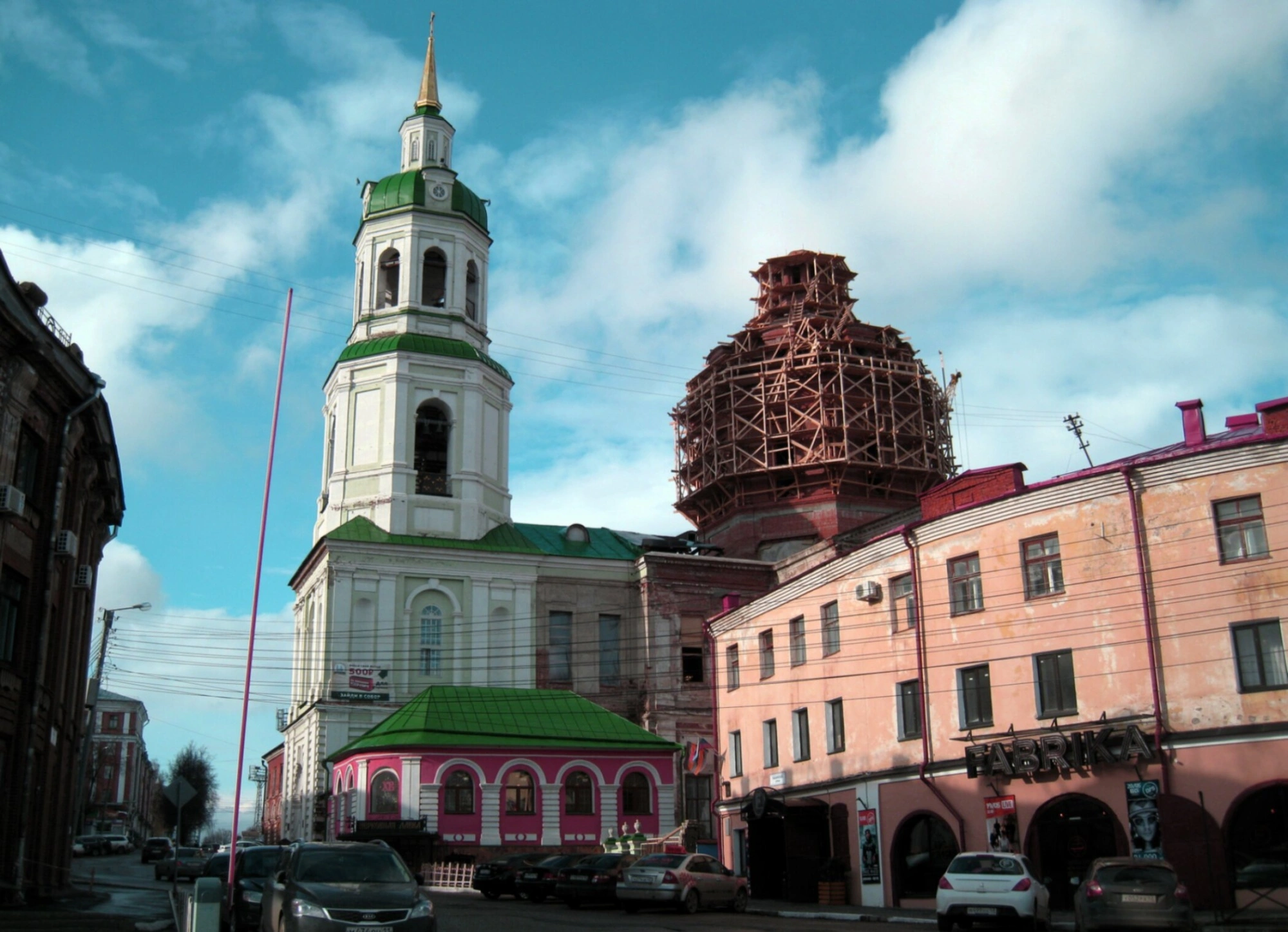 На представленной фотографии запечатлён Спасский собор города Кирова, известный также как собор Нерукотворного Образа Спасителя. Этот величественный православный храм, расположенный в историческом центре города, является выдающимся памятником церковной архитектуры второй половины XVIII века.