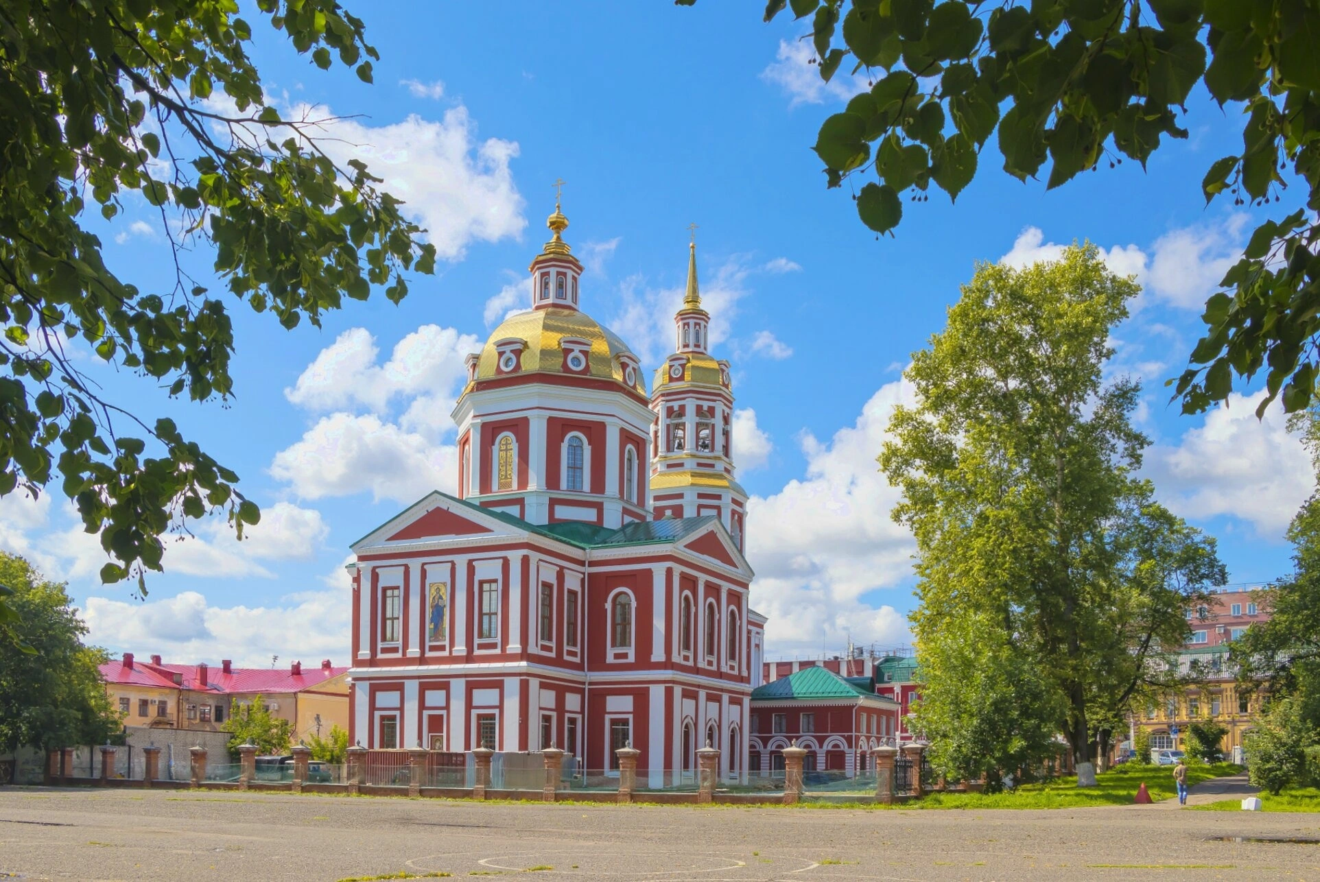 На представленной фотографии запечатлён величественный Спасский собор, находящийся в городе Кирове. Этот старинный православный храм, освящённый в честь Нерукотворного Образа Спасителя, является одной из главных духовных и архитектурных доминант исторического центра города, известного до 1934 года как Вятка.