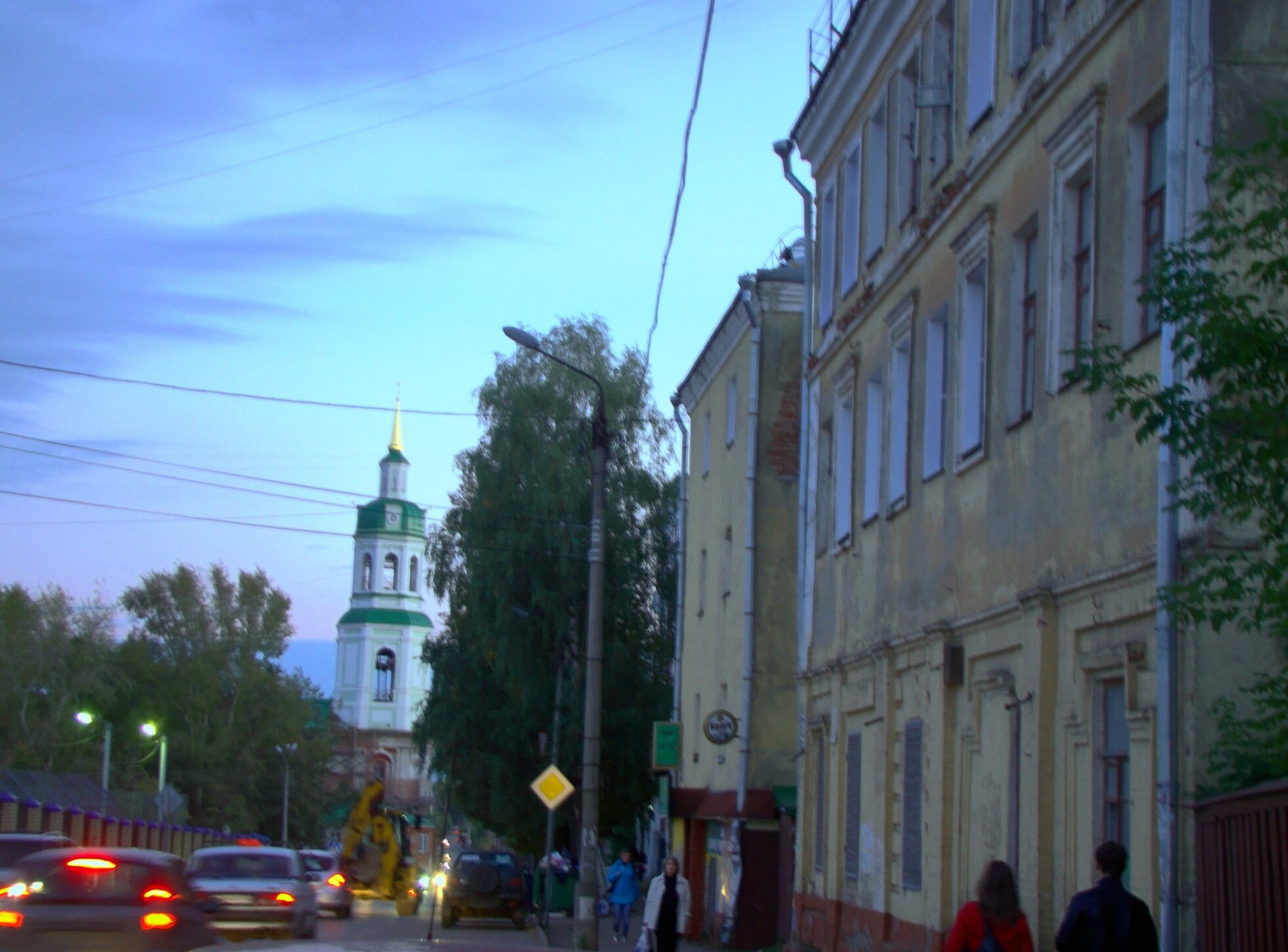 На переднем плане фотографии видны исторические здания, составляющие единый архитектурный комплекс с собором. Присутствие людей на тротуарах свидетельствует о том, что храм остается действующим и посещаемым местом молитвы. Автомобили на дороге напоминают о современном контексте существования древней святыни.