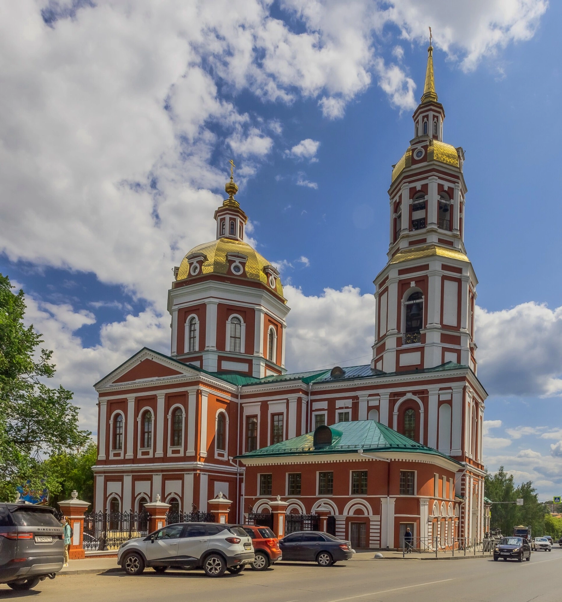 Храм располагается в исторической части города на улице Казанской, что подтверждают географические координаты съёмки. Перед собором проходит оживлённая улица, а на заднем плане виднеются кроны деревьев и голубое небо с облаками, что придаёт фотографии особую живость и натуральность. Этот образ сохраняет для потомков красоту и величие православной святыни, являющейся неотъемлемой частью культурного наследия России.