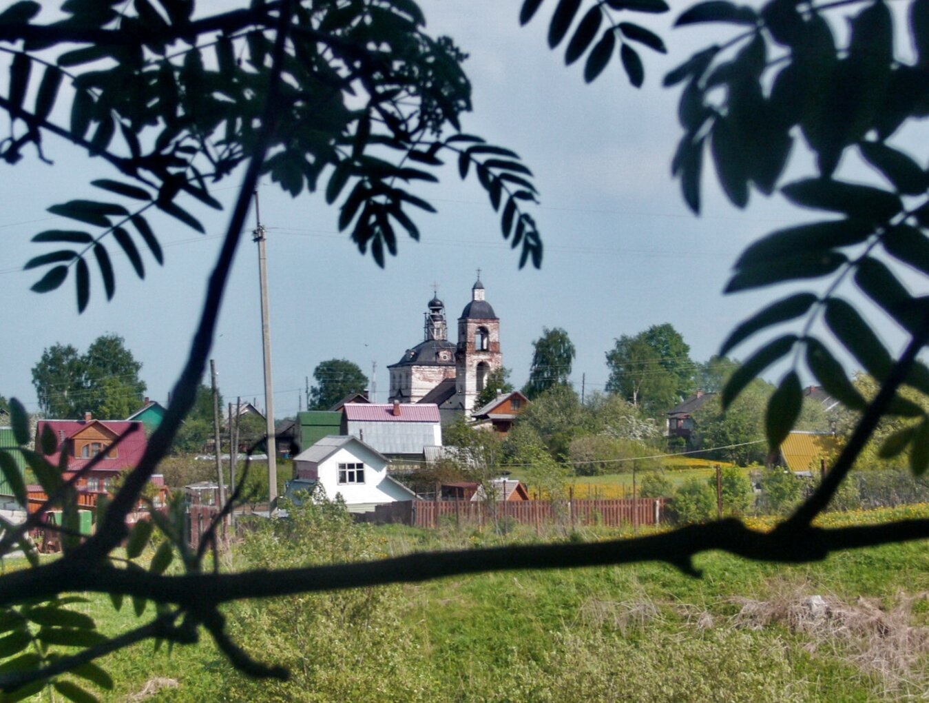 На заднем плане виднеются скромные сельские строения, что свидетельствует о гармоничном сочетании духовного центра с мирской жизнью прихожан. Географические координаты подтверждают расположение объекта в исторической части Переславля-Залесского – города, богатого православными святынями и памятниками древнерусской архитектуры.