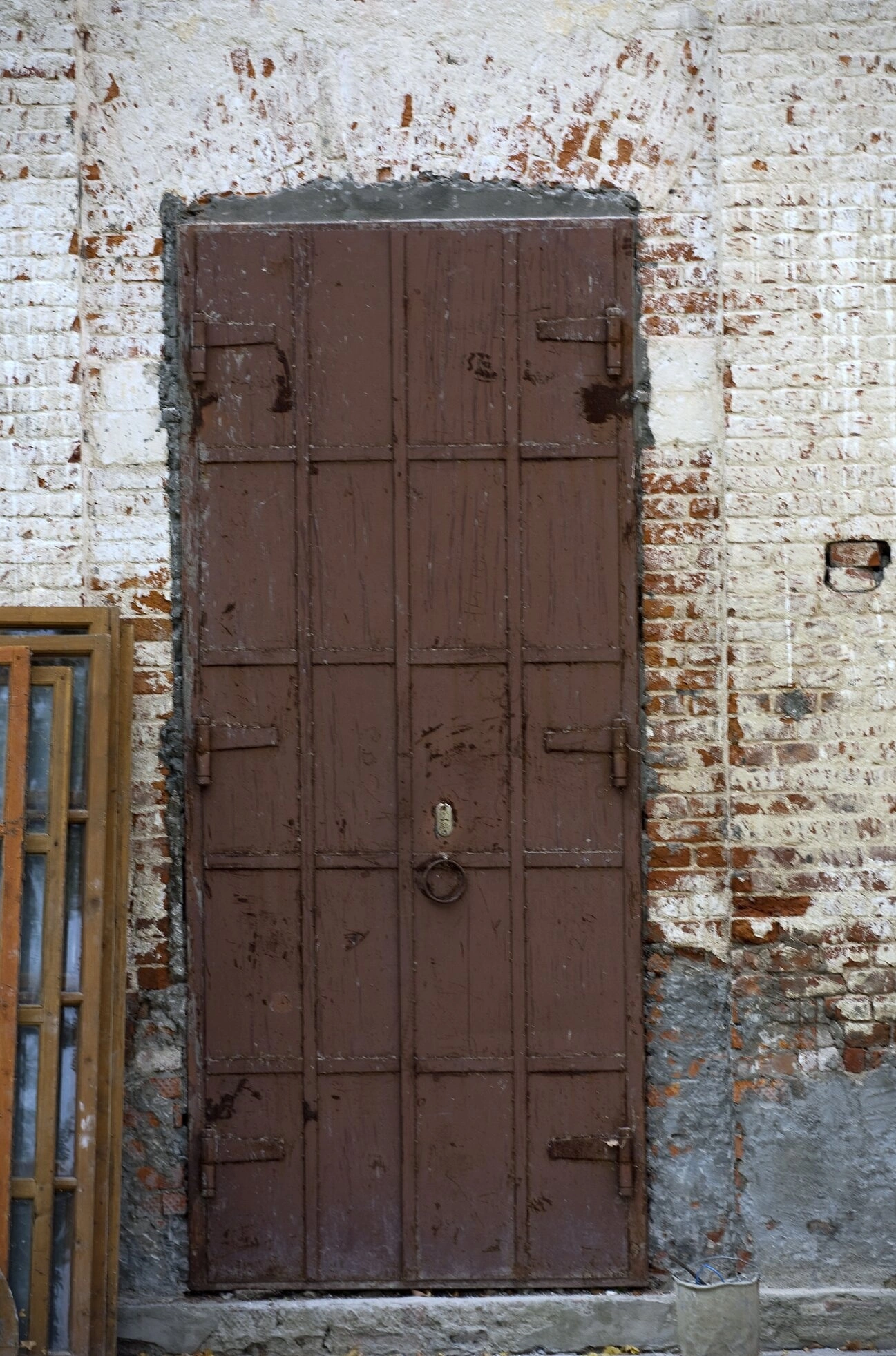Явственные следы времени в виде обветшавшей кирпичной кладки, частичной утраты штукатурки и ржавчины на мощных петлях и ручке-кольце свидетельствуют о долгой истории этого церковного входа. Кольцевая ручка, являющаяся традиционным элементом храмовых дверей, напоминает о круге вечности и непреходящем значении веры.