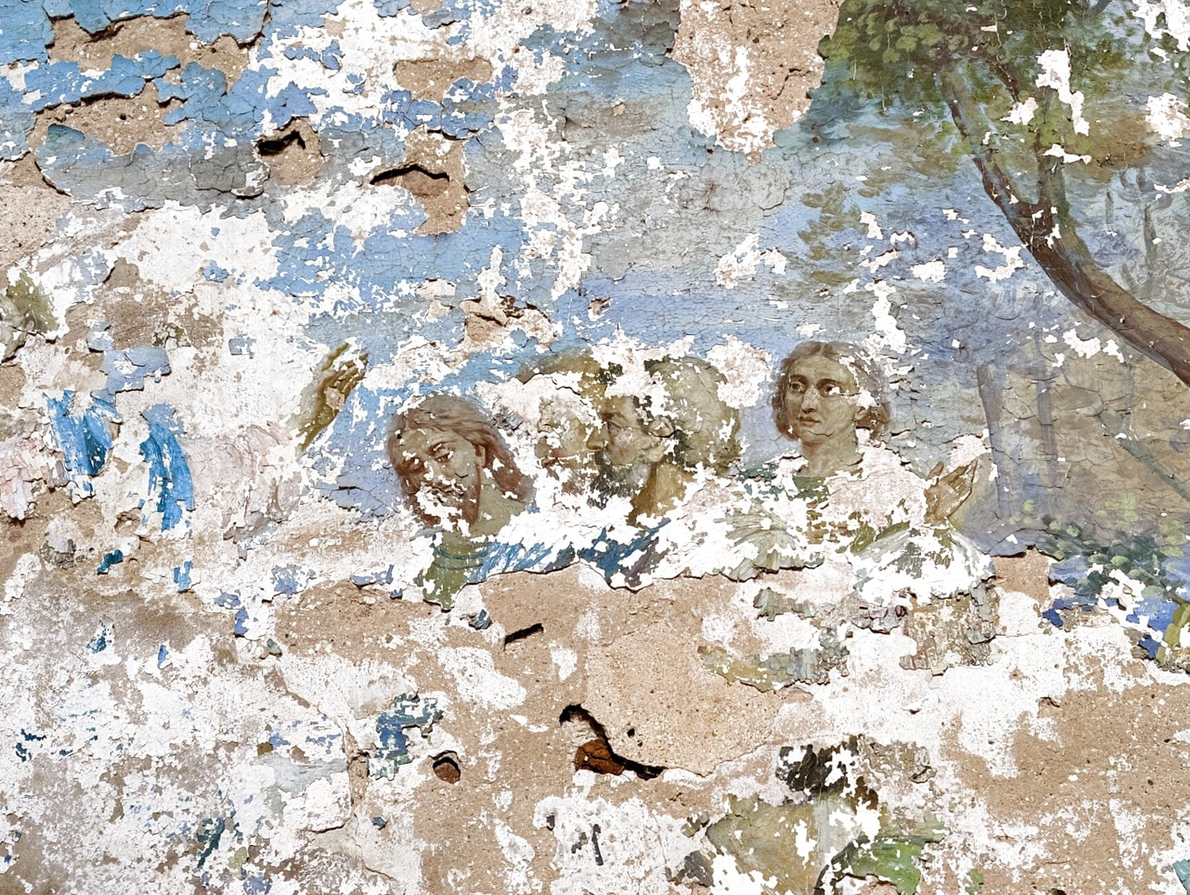 На представленной фотографии запечатлен фрагмент старинной настенной росписи из Церкви Вознесения Господня, расположенной в селе Дмитриевском Ивановской области. Свято-Вознесенский храм, являющийся объектом культурного наследия, сохранил уникальные образцы православной монументальной живописи.