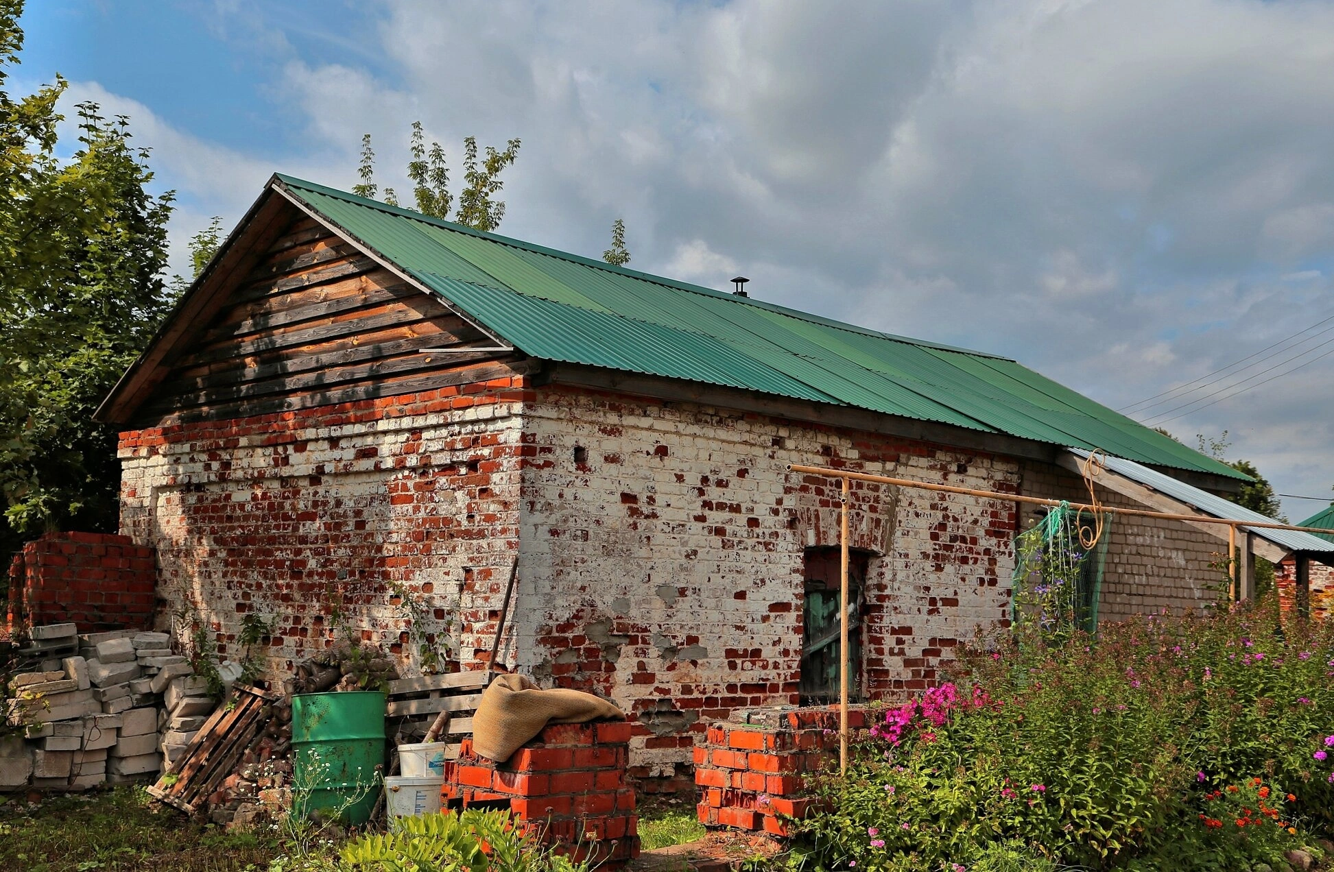 На представленной фотографии запечатлена историческая сторожка, принадлежавшая храму во имя Святой Великомученицы Параскевы Пятницы в селе Морозово Тейковского района Ивановской области. Здание представляет собой образец скромной церковно-хозяйственной постройки второй половины XIX века, выполненной из кирпича и оштукатуренной.