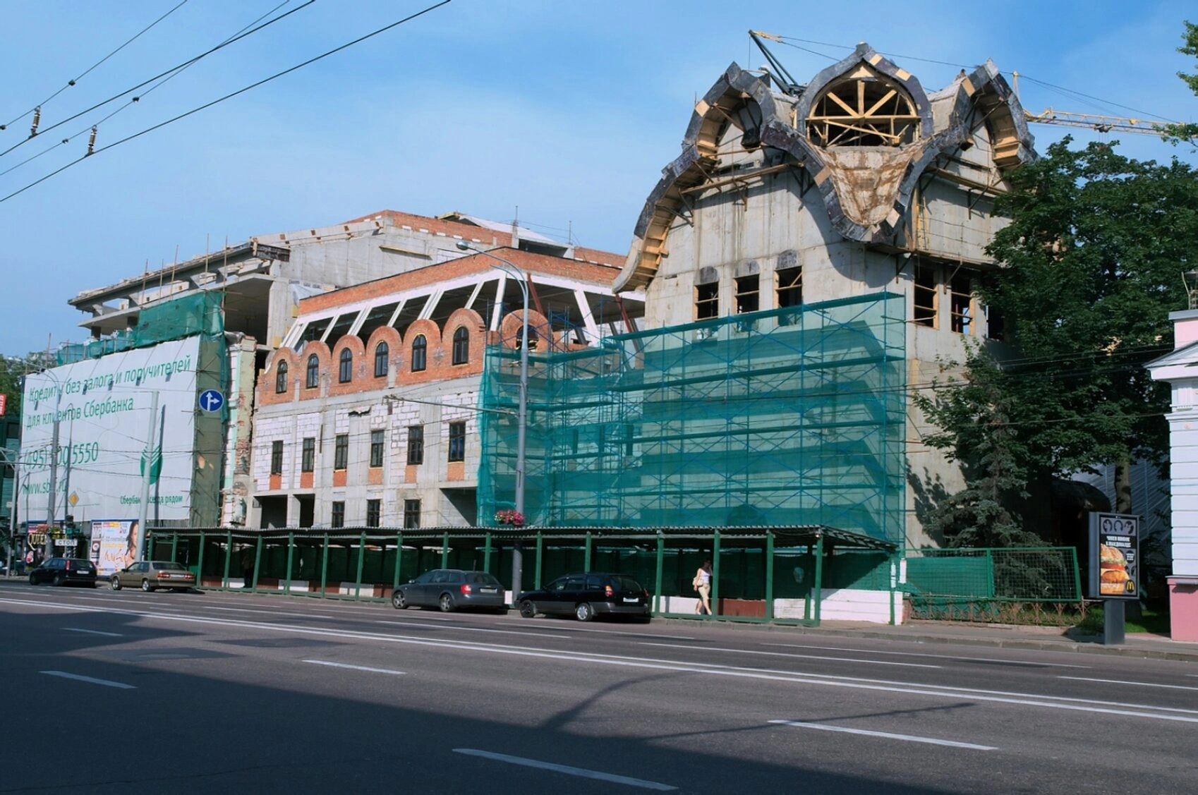 На представленной фотографии запечатлён исторический момент строительства храма в честь Святых Дивеевских, расположенного в Москве по адресу: проспект Мира, дом 24. Снимок был сделан 24 августа 2008 года и отражает активную фазу возведения святой обители.