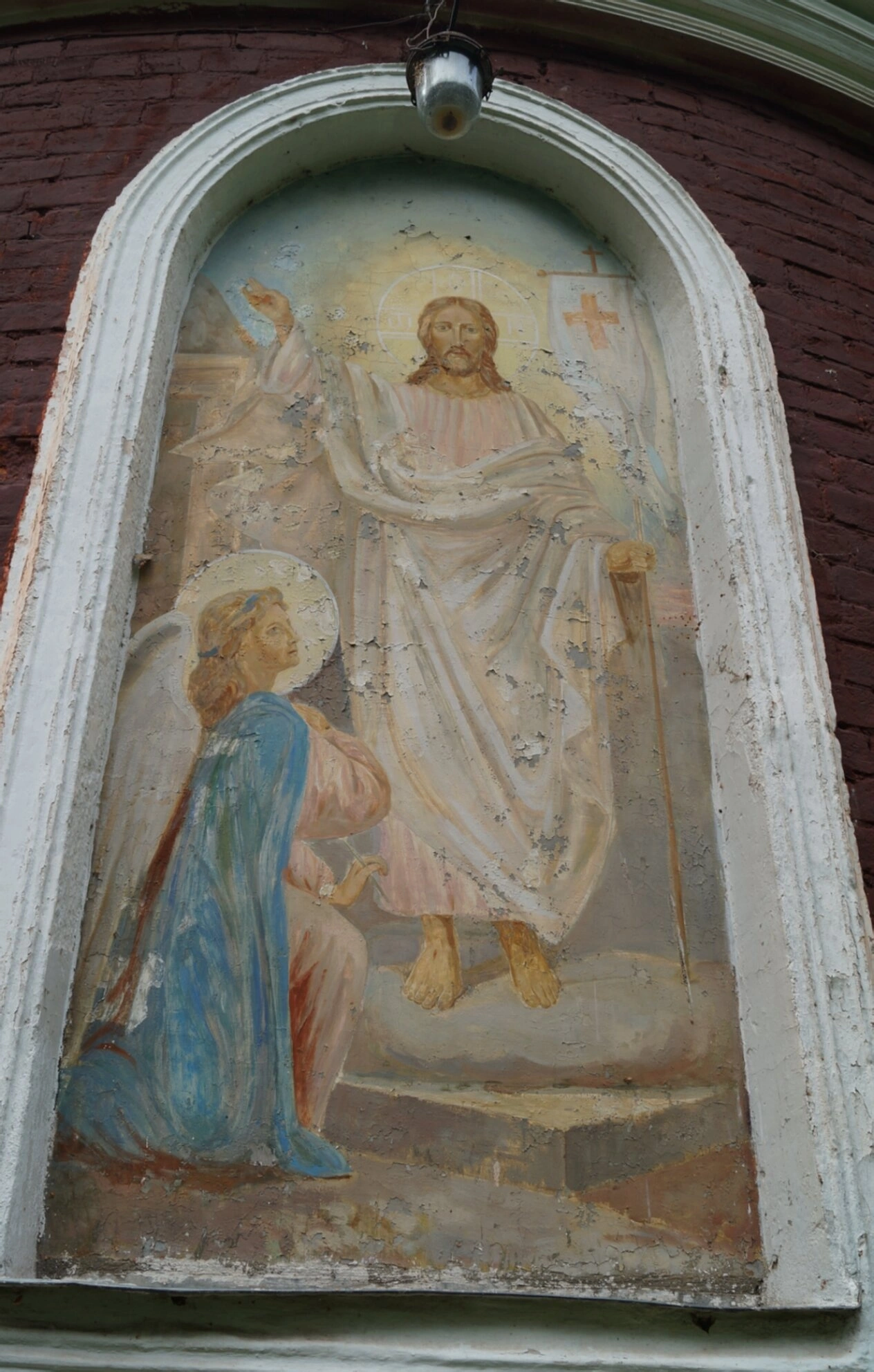 Священный образ в кирпичной нише Введенской церкви Калязина