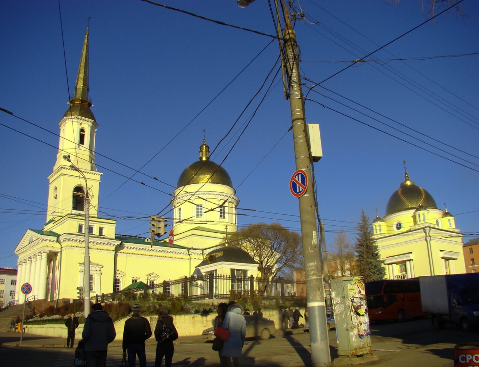 На фотографии запечатлён величественный Свято-Александро-Невский кафедральный собор, являющийся одной из главных православных святынь Ижевска и всей Удмуртской земли. Этот монументальный храм, освящённый в честь святого благоверного князя Александра Невского, представляет собой выдающийся памятник церковной архитектуры первой половины XIX века.