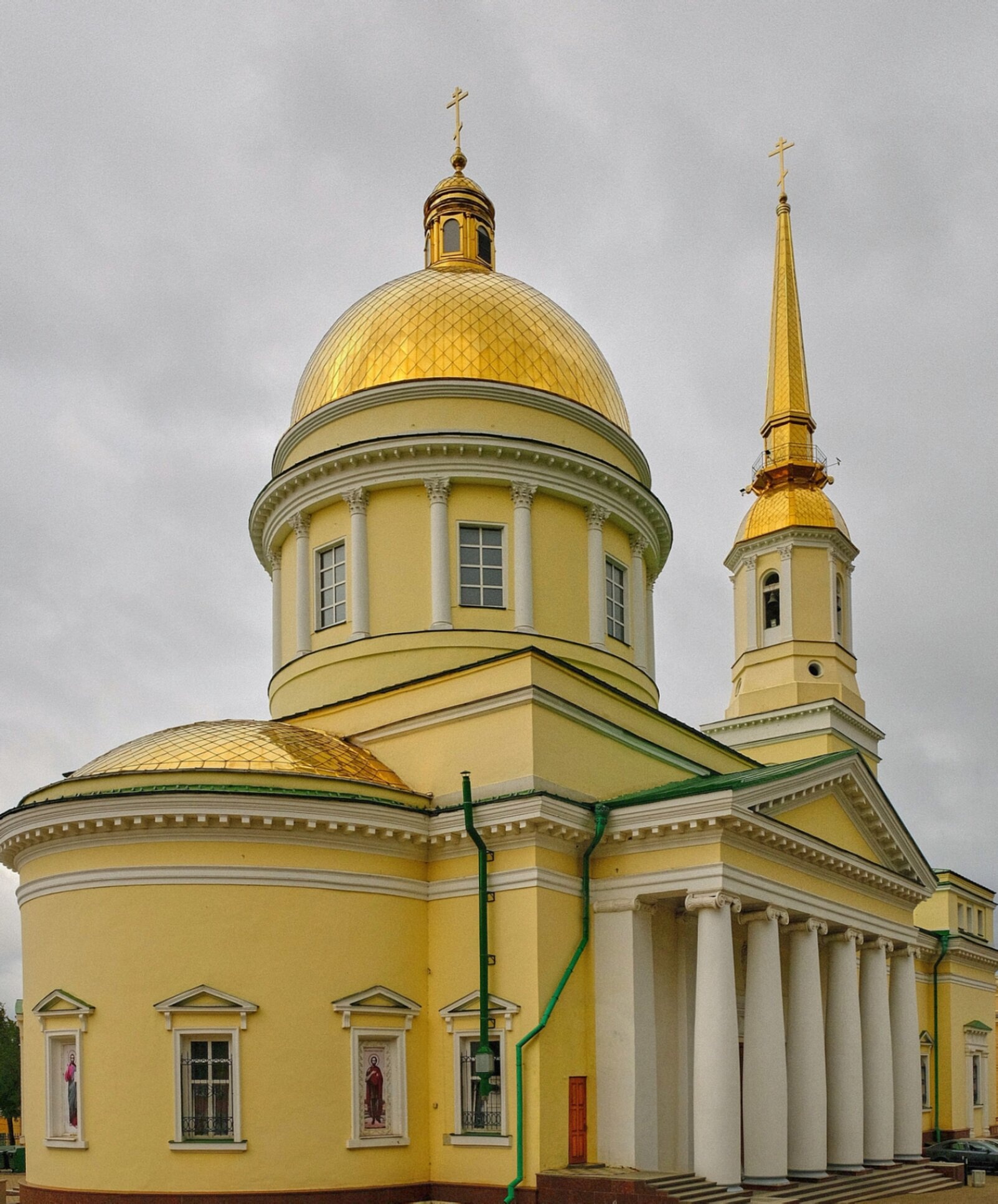 На представленной фотографии запечатлён величественный Свято-Александро-Невский кафедральный собор, расположенный в самом сердце города Ижевска. Этот православный храм, освящённый в честь святого благоверного князя Александра Невского, является одним из главных духовных центров Удмуртской митрополии и выдающимся памятником русской церковной архитектуры первой половины XIX века.