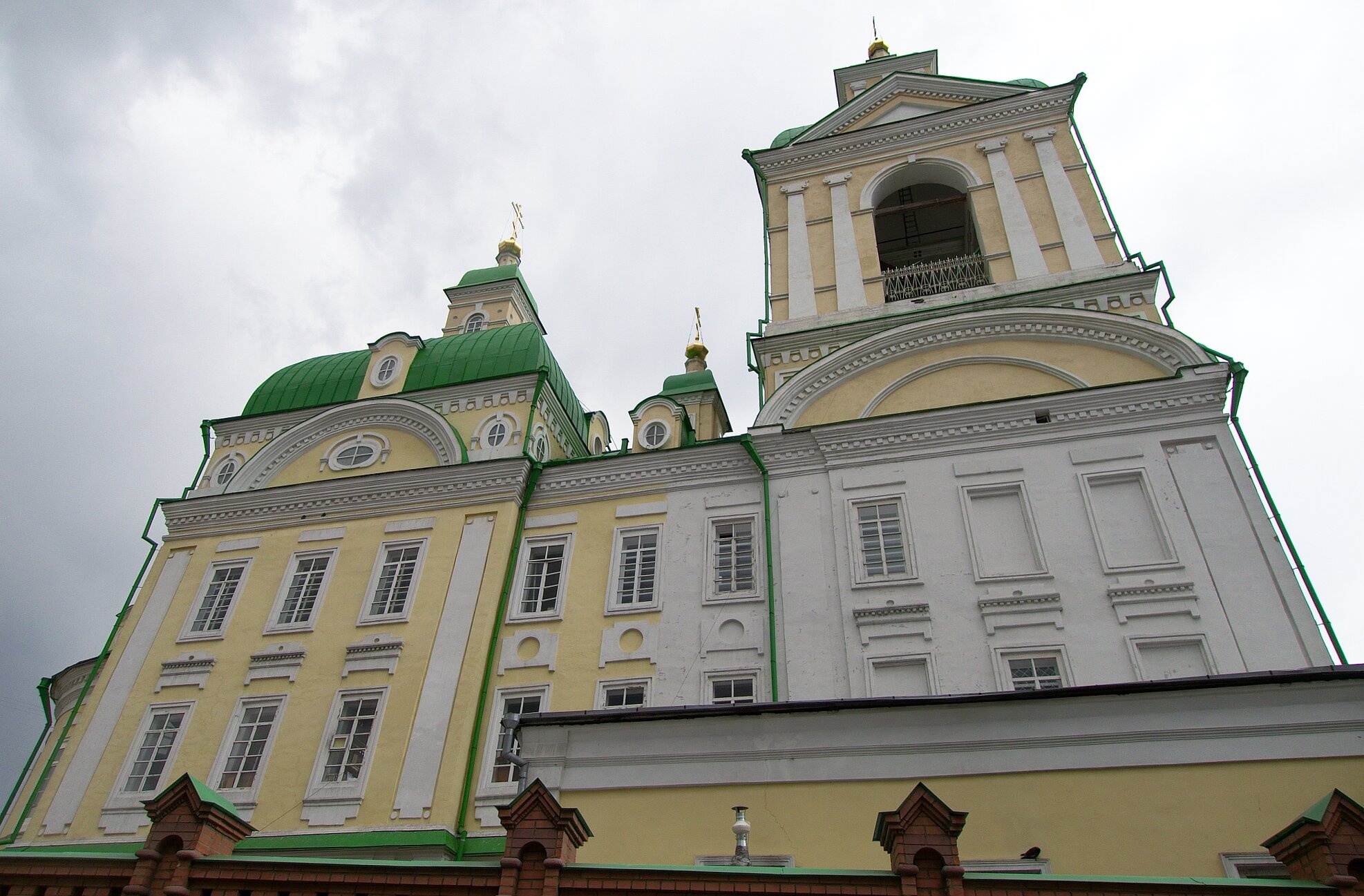 На фотографии запечатлён величественный облик Свято-Благовещенского собора, являющегося главным храмом Свято-Благовещенского женского монастыря в Красноярске. Это один из старейших каменных храмов не только города, но и всего Сибирского региона, обладающий непреходящей духовной и исторической ценностью.