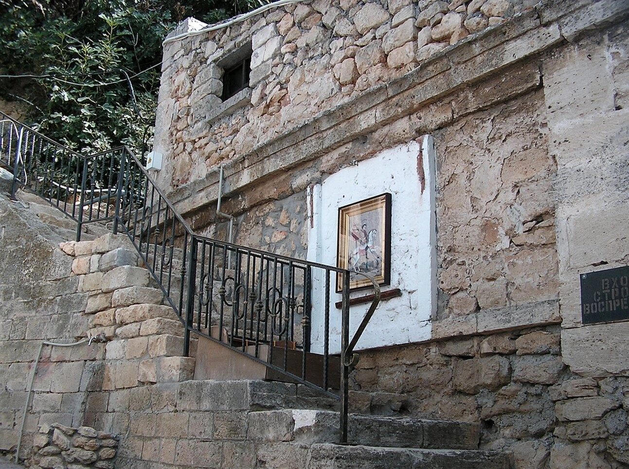 - Свято-Георгиевский Балаклавский монастырь: каменная лестница с иконой