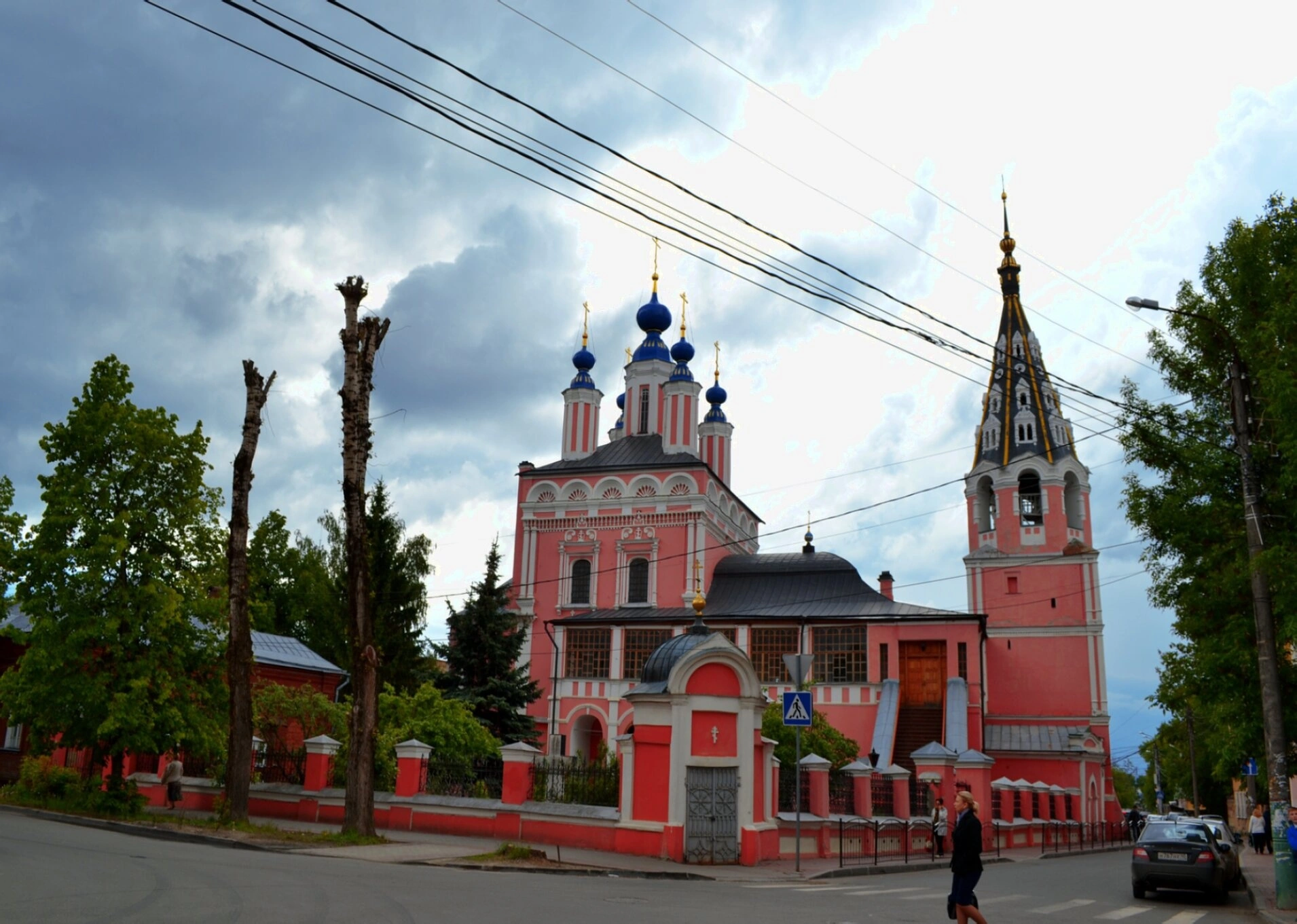 На представленной фотографии запечатлён величественный Свято-Георгиевский кафедральный собор, что располагается в исторической части города Калуги, за глубоким оврагом, известным как «Верх». Этот православный храм является не только архитектурной доминантой, но и духовным сердцем города, имеющим богатую и сложную историю.