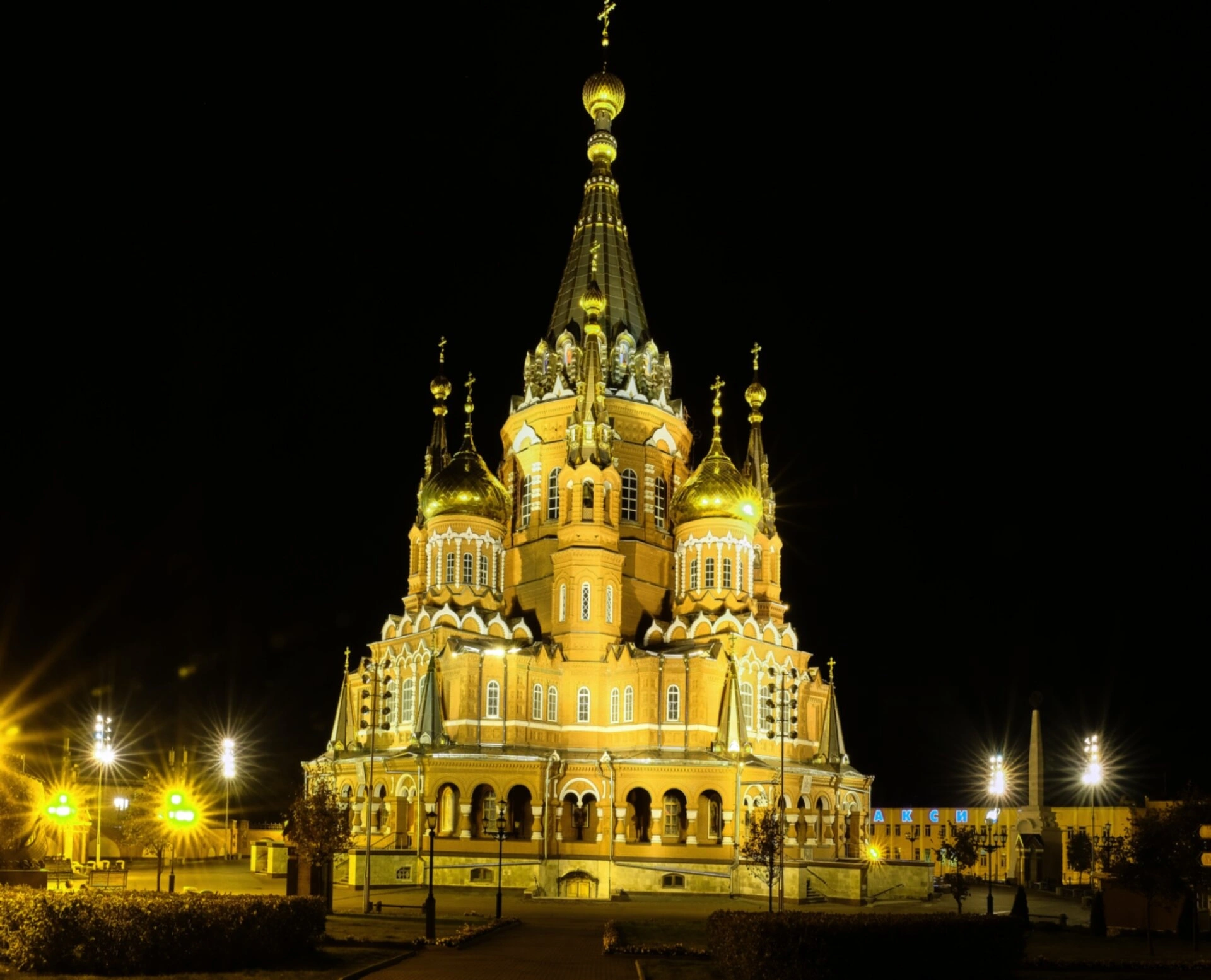 Свято-Михайловский собор в Ижевске: величественный образ в ночной подсветке