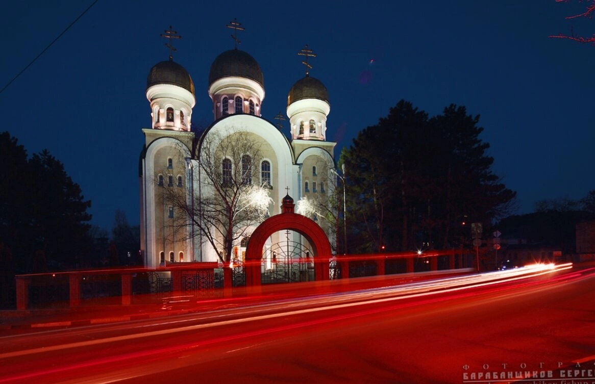 Свято-Никольский собор в Кисловодске в ночной подсветке