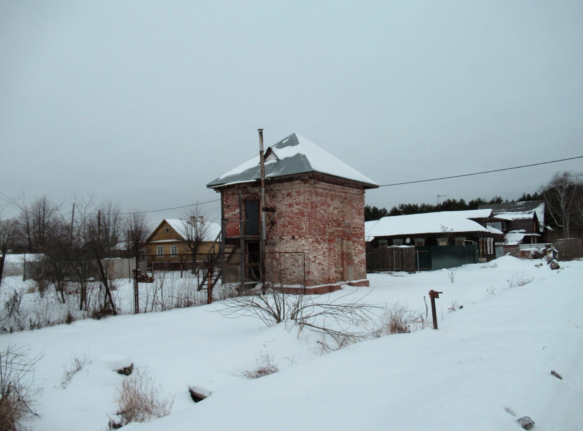 На переднем плане взору открывается старинная кирпичная постройка монастырского комплекса, возможно, бывшая хозяйственная обитель или мельница, ныне являющаяся неотъемлемой частью исторического облика святой обители. Её строгие формы и добротность кладки свидетельствуют о многовековой истории и традициях русского церковного зодчества.