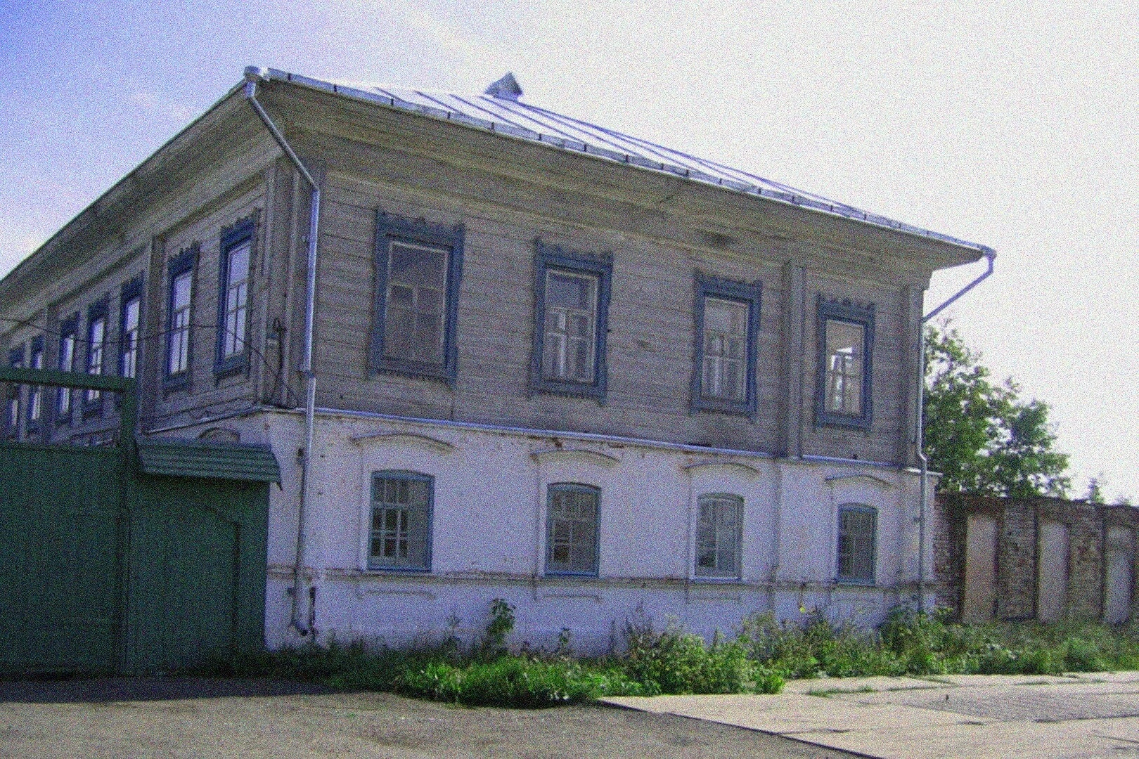 На представленном изображении запечатлён один из корпусов Свято-Покровского женского монастыря, старейшей православной обители за Уралом, расположенной в граде Верхотурье. Здание является ярким образцом традиционной для Урала и Сибири строительной практики рубежа XIX–XX столетий, где первый каменный этаж служил прочным и долговечным основанием, а второй, деревянный, этаж — обеспечивал тёплое и сухое жилое пространство.
