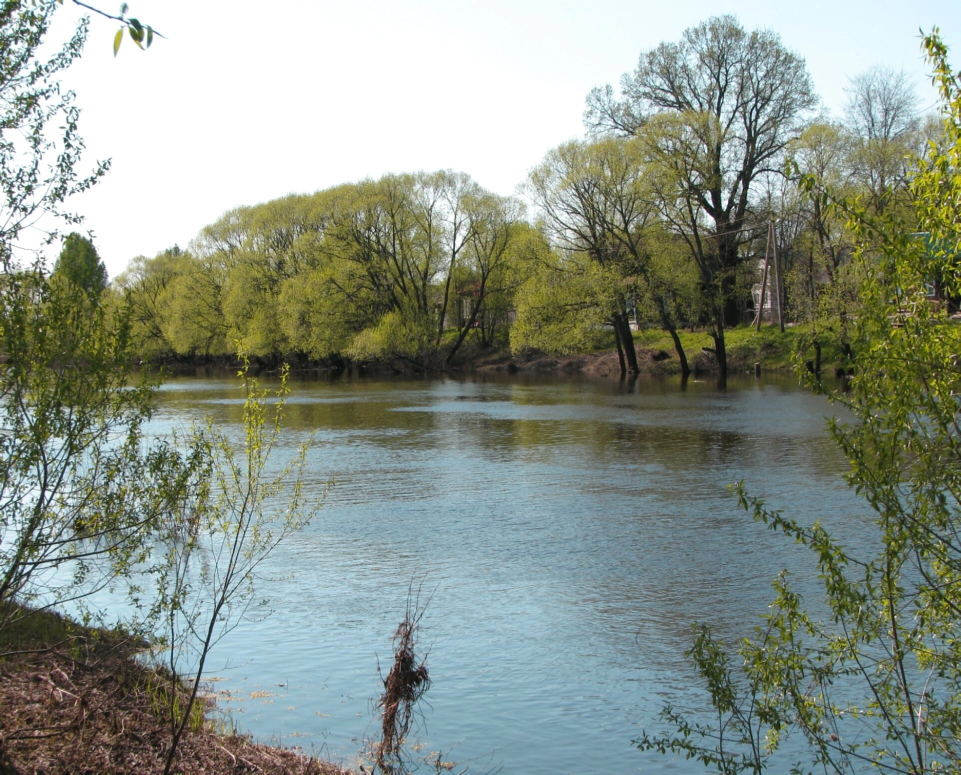 На одном из берегов, окружённый зеленью, возвышается Свято-Троицкий храм — памятник русской церковной архитектуры. Его стройная колокольня и купола, устремлённые ввысь, создают величественный образ, напоминающий о вечном и горнем. Чистое светлое небо, отражающееся в водах реки, подчёркивает благодатность и умиротворённость этого святого места, привлекающего как паломников, так и ценителей русской истории и природы.
