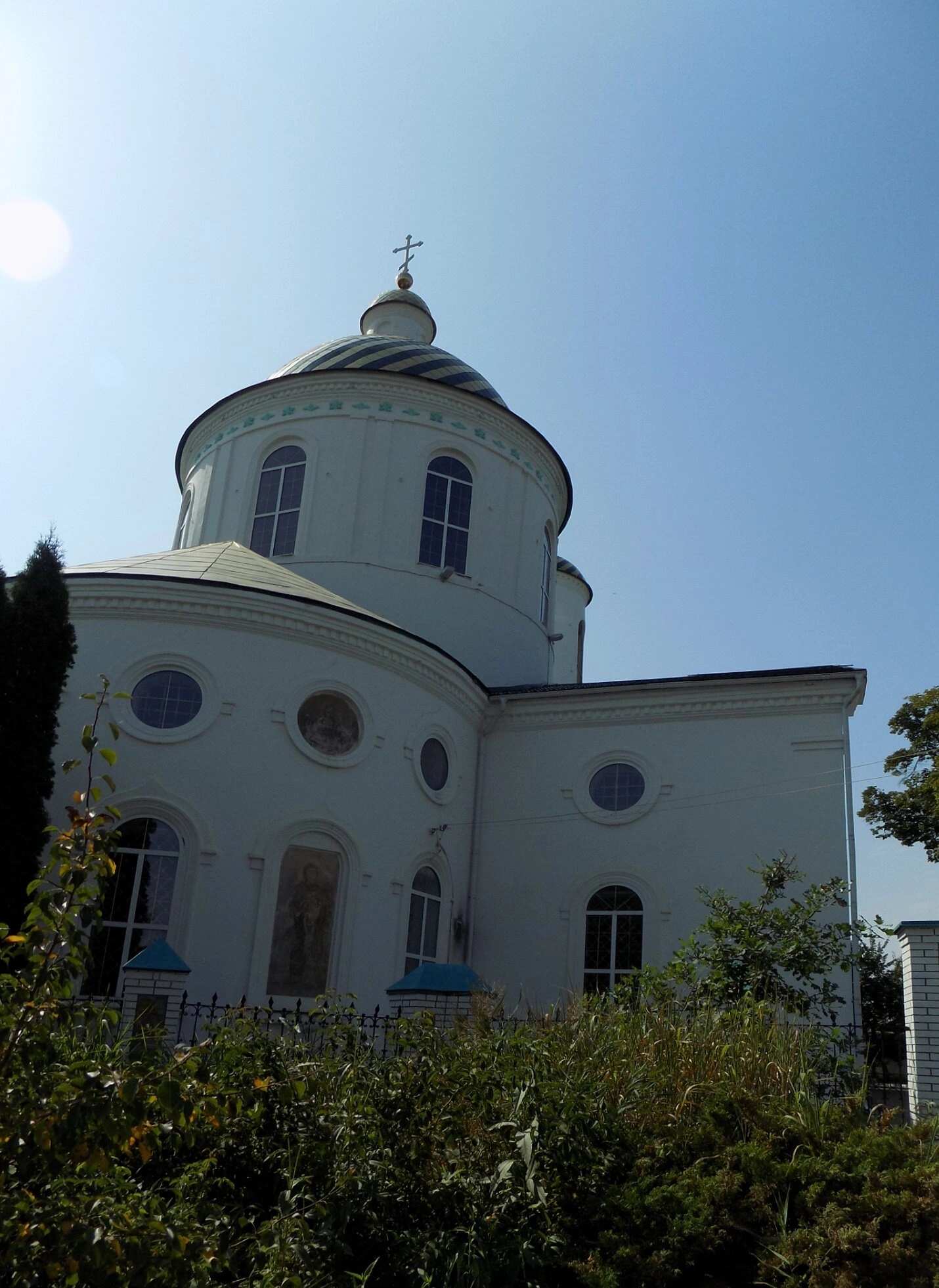 На представленной фотографии запечатлён Свято-Троицкий храм, расположенный в историческом центре города Суджи Курской области. Этот православный храм является значимым памятником церковной архитектуры первой половины XIX века и объектом культурного наследия.