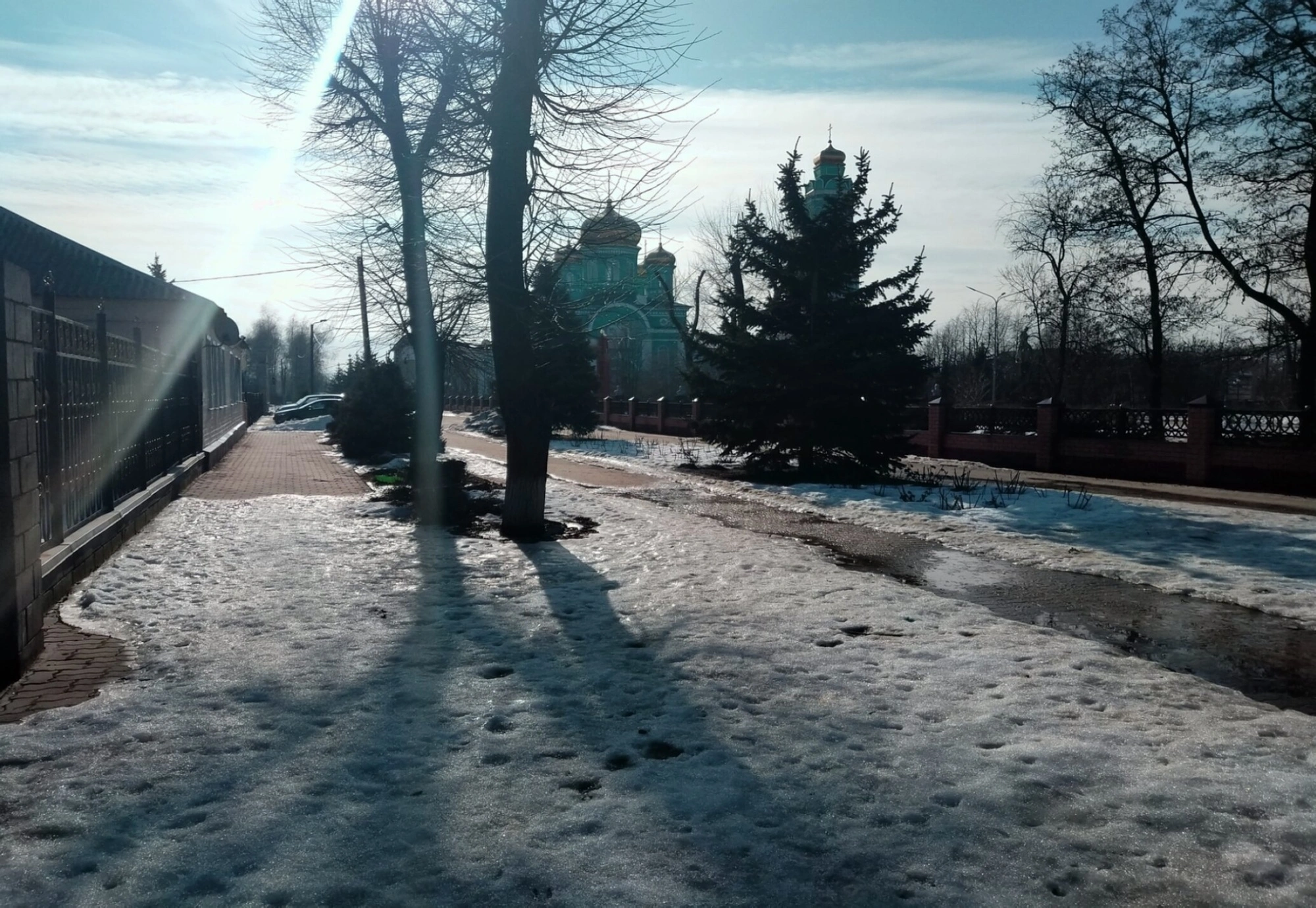 Небесная сфера в этот день частично покрыта лёгкими облаками, что создаёт мягкое, благостное освещение, подчёркивающее безмолвную и строгую красоту зимнего пейзажа. Данный образ напоминает о вечном и незыблемом — о вере, которая, подобно хвойным деревьям, остающимся зелёными на переднем плане, не увядает и в самые суровые времена. Свято-Троицкий храм является духовной твердыней и центром православной жизни для жителей города.
