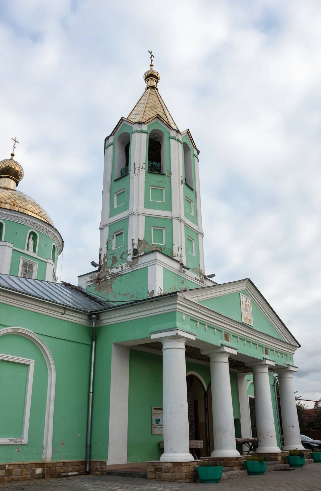 Доминантой храмового комплекса является высокая трёхъярусная колокольня, завершающаяся золочёным куполом со крестом. На ярусах звоницы расположены арочные проёмы, предназначенные для церковных колоколов. Главный вход в храм оформлен монументальным портиком с колоннами, что придаёт всей постройке особую торжественность.