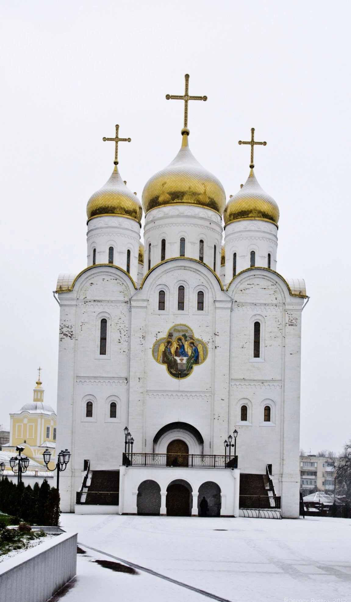 В зимнем убранстве собор выглядит особенно торжественно. Белизна снега оттеняет белоснежные стены храма и сияние золотых куполов, увенчанных святыми крестами. Собор является не только архитектурной доминантой города, но и средоточием духовной жизни, местом молитвенного предстояния и совершения церковных таинств.