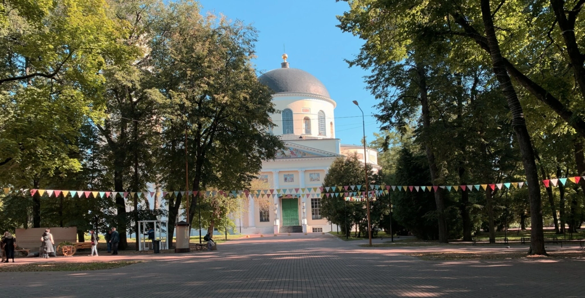 На переднем плане фотографии видна благоустроенная площадь, украшенная в день съёмки праздничными гирляндами из флажков, что свидетельствует о совершении в соборе торжественного богослужения или празднования важного церковного или гражданского события. Собор является не только памятником архитектуры федерального значения, но и действующим духовным центром, где ежедневно совершаются богослужения и звучат молитвы.