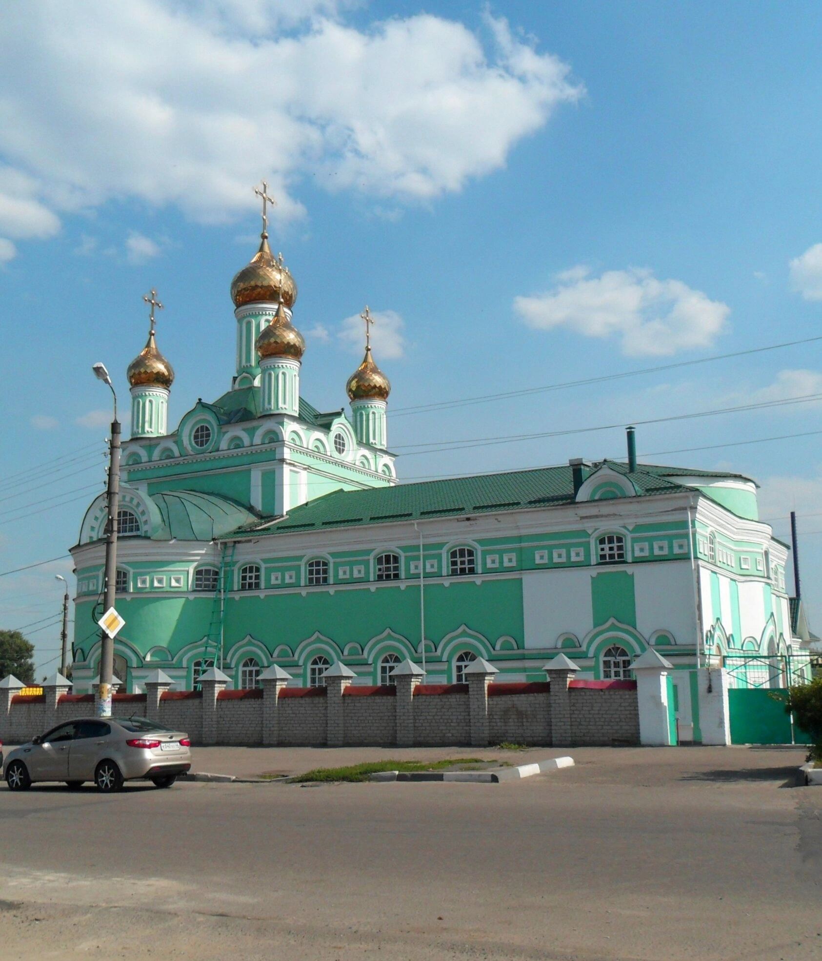 На представленной фотографии запечатлён величественный Свято-Троицкий кафедральный собор, являющийся главной православной святыней города Щигры Курской области. Снимок позволяет в деталях рассмотреть монументальное архитектурное сооружение, которое доминирует в силуэте города и служит духовным центром для верующих.