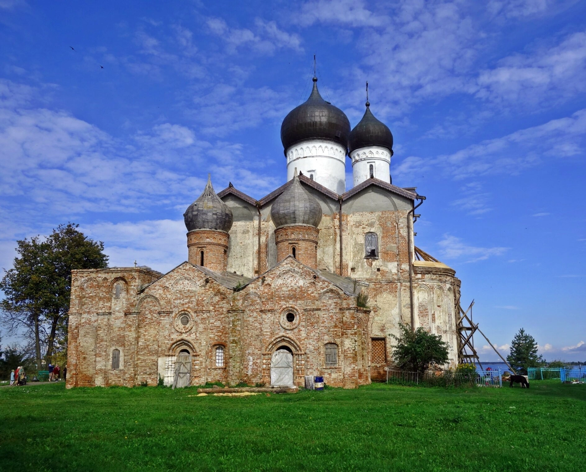 На представленной фотографии запечатлён Свято-Троицкий Михаило-Клопский мужской монастырь, древняя православная обитель, расположенная в Новгородской области близ реки Веряжи. Монастырь, основанный в XV веке, является выдающимся памятником русской духовной культуры и архитектуры. Главной доминантой монастырского ансамбля, видимой на снимке, является соборный храм во имя Святой Живоначальной Троицы.
