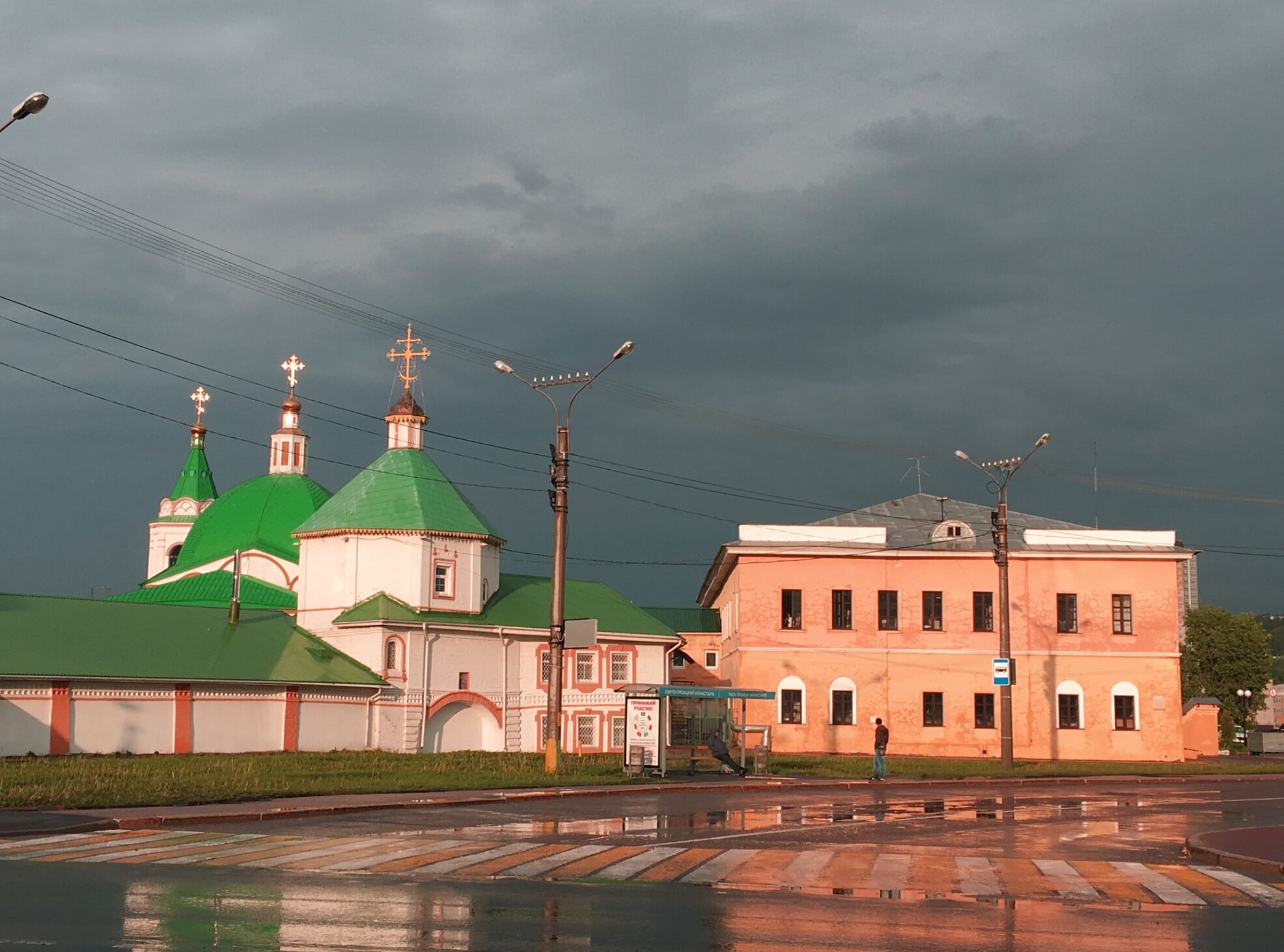 Архитектурный ансамбль монастыря, который мы видим на снимке, формировался на протяжении нескольких веков. Центральное место в нём занимает надвратный храм во имя святого великомученика Феодора Стратилата, построенный в XVII веке. Его стройная колокольня и лаконичные формы являются классическим образцом русского церковного зодчества. Помимо него, на территории монастыря находятся Троицкий собор и церковь Толгской иконы Божией Матери.