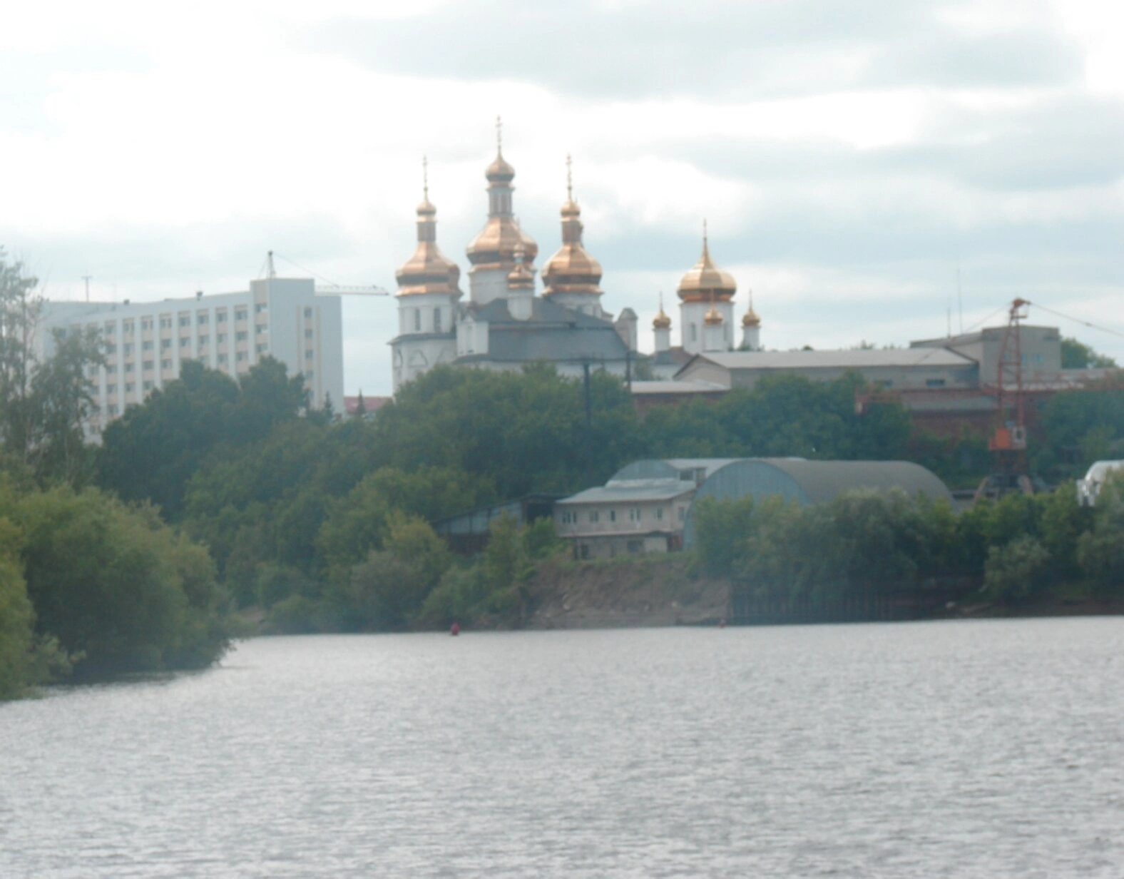 На представленной фотографии запечатлён величественный ансамбль Свято-Троицкого мужского монастыря, возвышающегося на берегу реки Туры в городе Тюмени. Эта древняя православная обитель, основанная в начале XVII столетия по благословению митрополита Филофея (Лещинского), является одним из первых духовных центров Сибири и объектом культурного наследия федерального значения.
