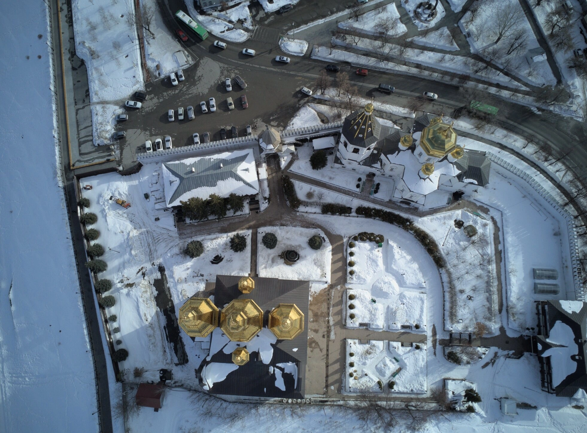 Свято-Троицкий мужской монастырь в Тюмени: вид с высоты птичьего полёта