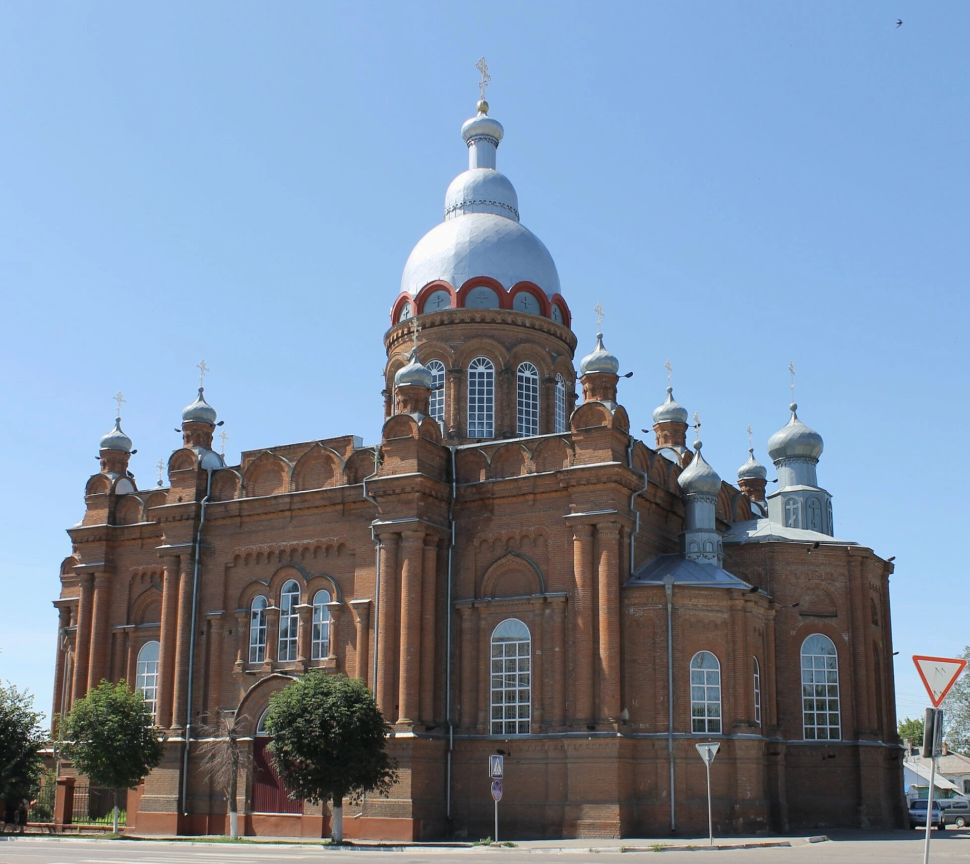 На представленной фотографии запечатлён величественный Свято-Троицкий собор, расположенный в историческом центре города Обояни Курской области. Этот православный храм, освящённый во имя Живоначальной Троицы, является не только духовным центром, но и выдающимся памятником церковной архитектуры позднего XIX века, охраняемым государством в статусе объекта культурного наследия регионального значения.
