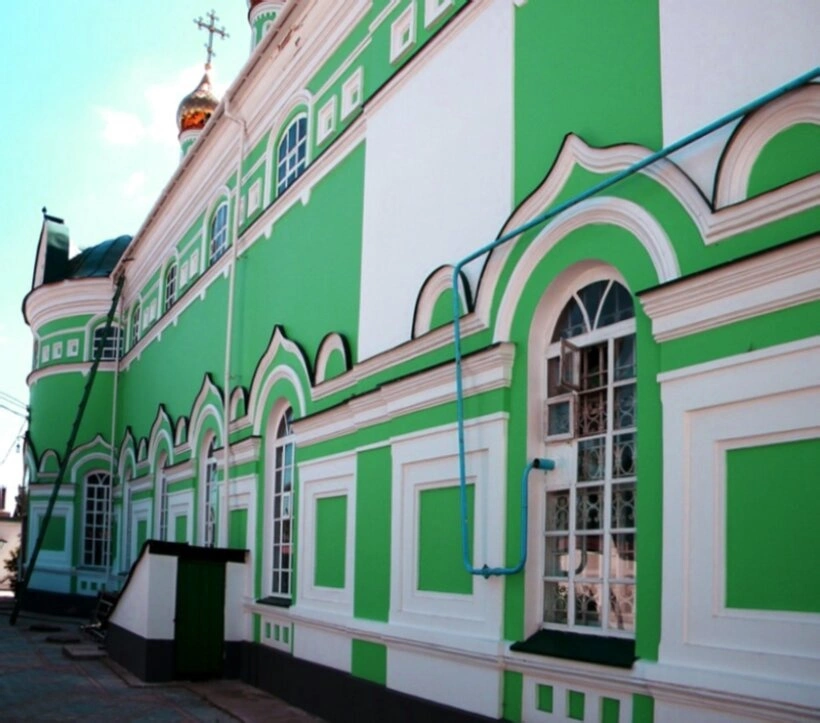 Собор был возведён в конце XIX века на средства благотворителей и благочестивых горожан. Его стены, окрашенные в умиротворяющие бело-зелёные тона, символизируют чистоту и вечную жизнь во Святой Троице. Архитектурный облик храма гармонично сочетает традиции русского церковного зодчества с элементами классицизма. Взгляд приковывают изящные арочные окна, украшенные резными наличниками, и стройные пилястры, устремляющие композицию ввысь.