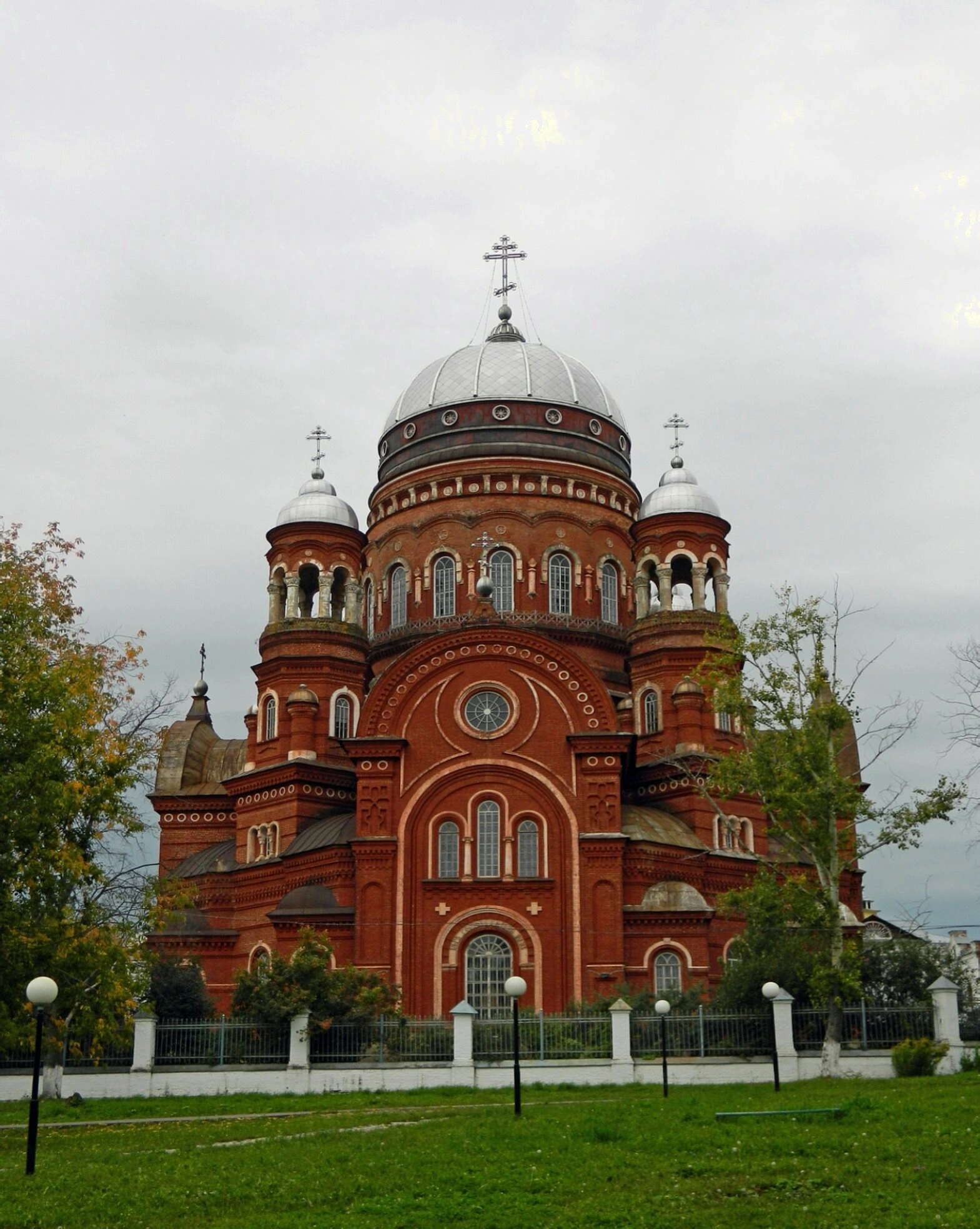 Собор был возведён в 1894–1900 годах на средства благотворителей и прихожан по проекту вятского губернского архитектора. Храм построен в русско-византийском стиле из красного кирпича с богатым декоративным убранством. Пятиглавое завершение собора символизирует Господа Иисуса Христа и четырёх евангелистов.