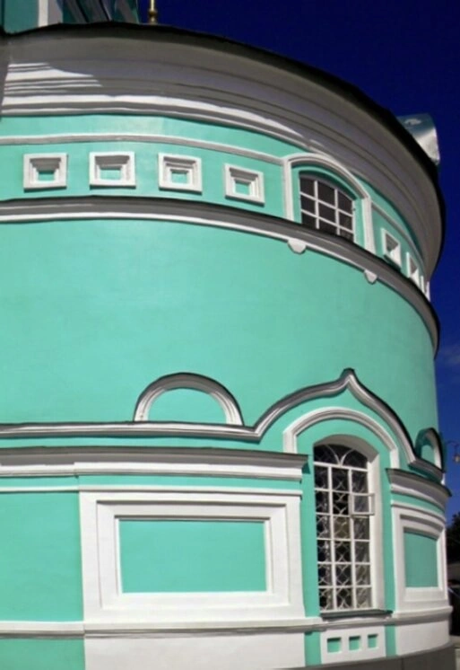 Архитектурная композиция включает выразительные пилястры, разделяющие плоскость стены и придающие ей особую пластичность. Карнизные завершения и другие декоративные детали выполнены с соблюдением традиций православного храмового зодчества. Цветовое решение фасада символизирует духовное обновление и надежду, что соответствует посвящению храма Пресвятой Троице.