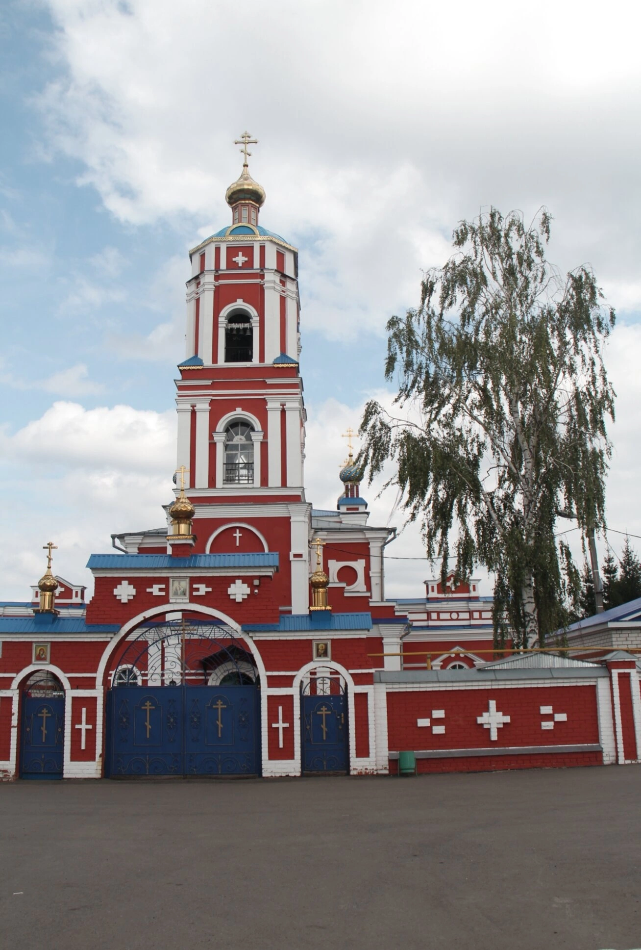 На представленной фотографии запечатлен величественный Свято-Троицкий собор, расположенный в историческом центре города Тетюши Республики Татарстан. Храм является духовным центром православной жизни города и выдающимся памятником церковной архитектуры.