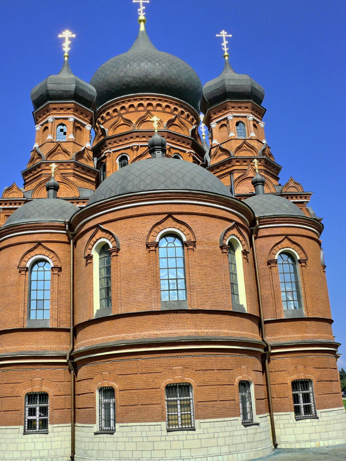 Архитектура храма исполнена в русско-византийском стиле, который был особо популярен в период его строительства. Взгляд приковывает монументальный основной объём, увенчанный мощным пятиглавием. Центральный золотой купол, символизирующий Христа, и четыре синих купола со звёздами, обозначающие евангелистов, создают яркий и узнаваемый силуэт на фоне неба. Фасад богато украшен килевидными кокошниками, аркатурными поясами и изразцовыми вставками, что свидетельствует о высоком мастерстве тульских зодчих.