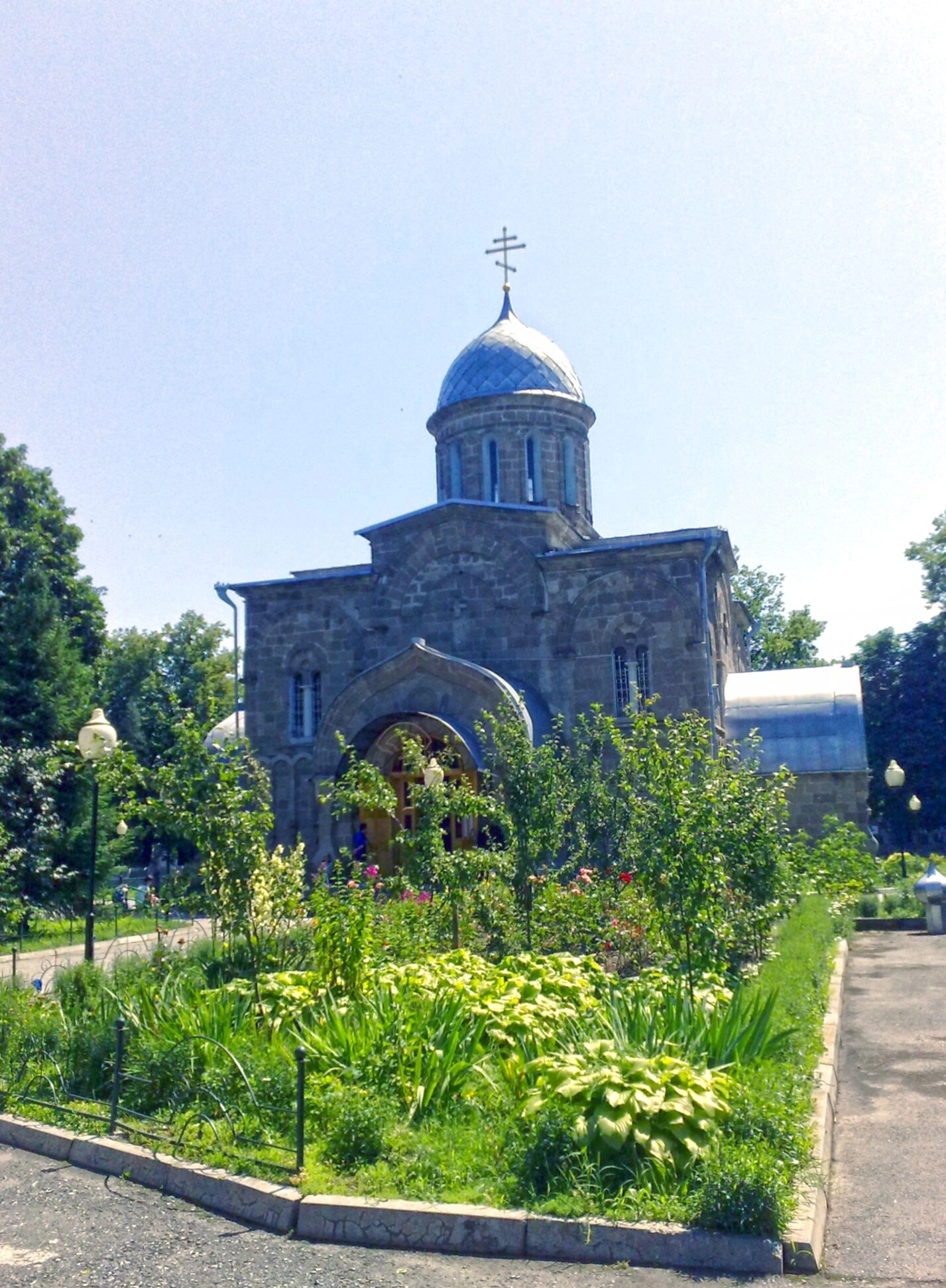 На представленной фотографии запечатлён величественный Свято-Вознесенский кафедральный собор, являющийся одной из главных православных святынь Республики Северная Осетия-Алания. Храм располагается в центре города Алагира и служит духовным центром для верующих всего региона.