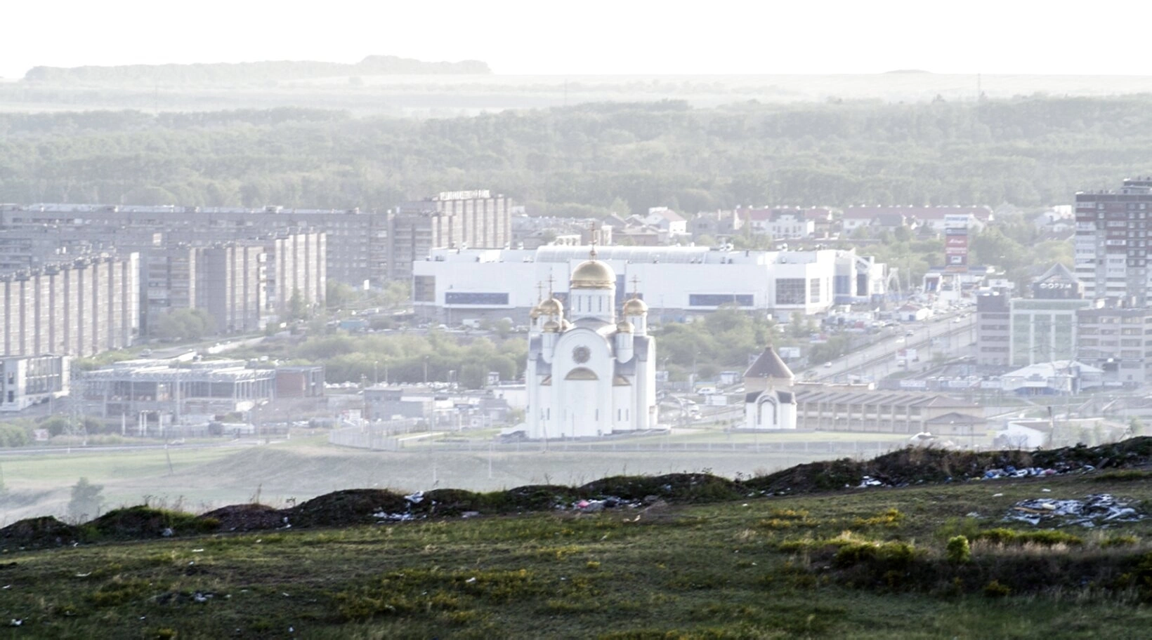 На заднем плане открывается вид на жилые кварталы и инфраструктуру крупного промышленного центра, что символично подчёркивает неразрывную связь между духовной жизнью и мирским трудом. Собор был построен на народные пожертвования и средства благотворителей, что свидетельствует о глубокой вере и единстве народа. Сегодня этот храм является не только архитектурной доминантой, но и средоточием церковной и социальной жизни Магнитогорска, воплощая в себе торжество Православия на земле Урала.