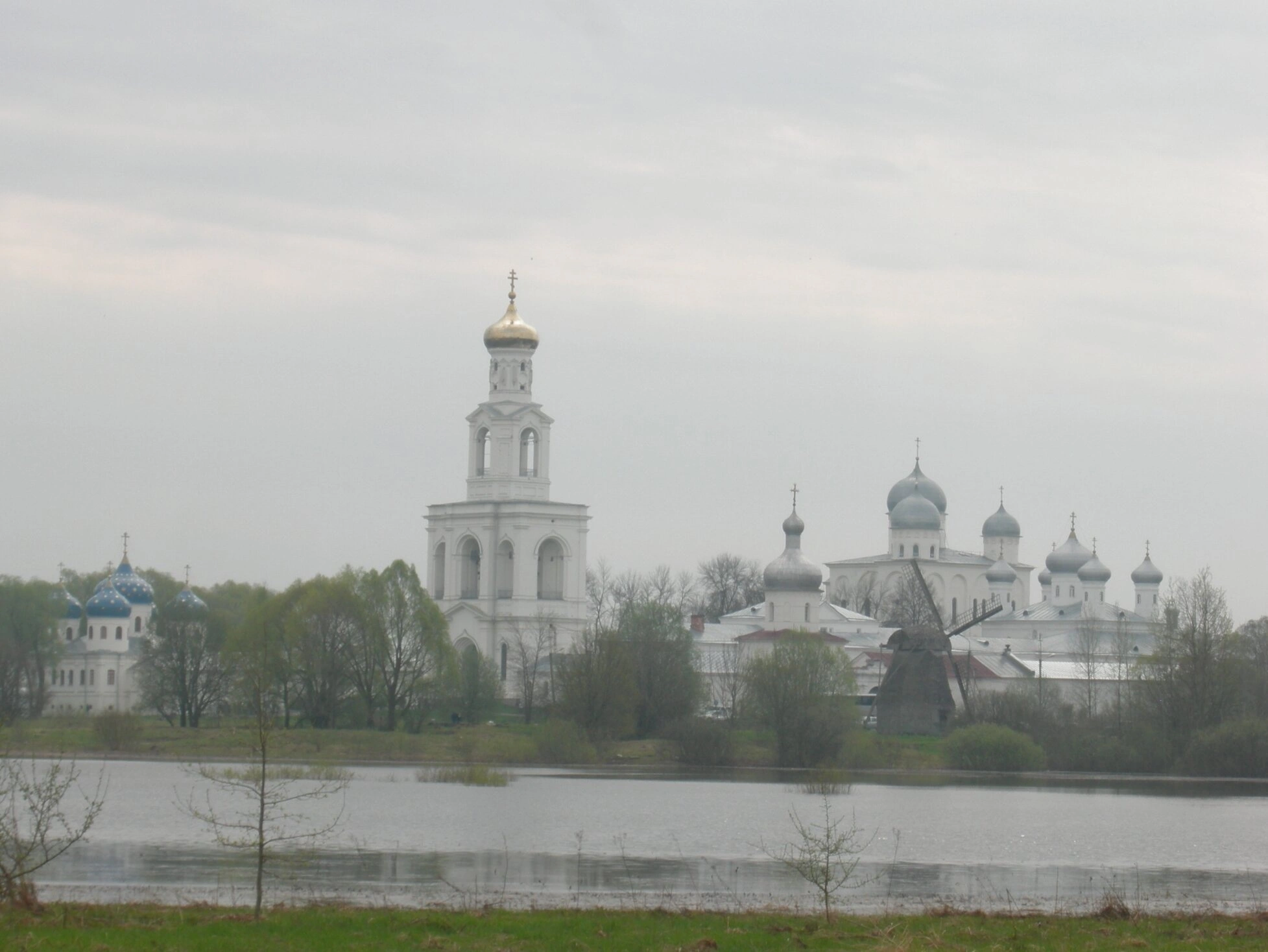 На представленной фотографии запечатлён величественный ансамбль Свято-Юрьева мужского монастыря, одной из древнейших православных обителей России, располагающейся на левом берегу реки Волхов вблизи истока её из озера Ильмень. Монастырь, основанный в 1030 году великим князем Ярославом Мудрым, во святом крещении носившим имя Георгий (Юрий), на протяжении столетий является духовным оплотом Новгородской земли и объектом всемирного культурного наследия ЮНЕСКО.