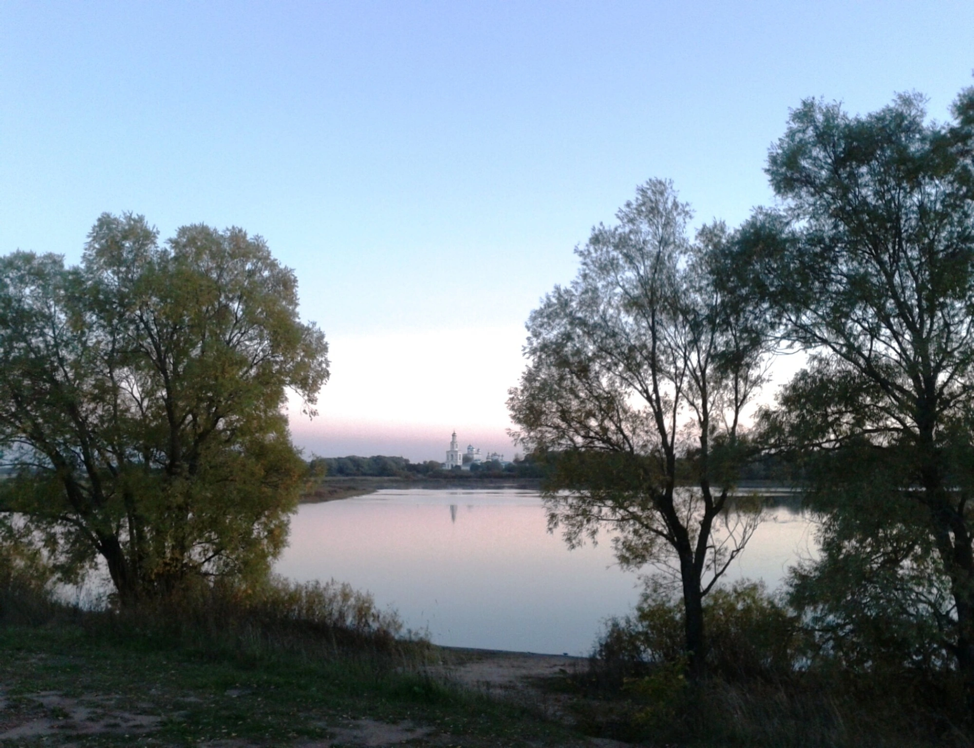 На представленной фотографии запечатлён Свято-Юрьев мужской монастырь, древнейшая православная обитель, возвышающаяся на левом берегу реки Волхов у самого её истока из озера Ильмень. Основанный великим князем Ярославом Мудрым во имя святого великомученика Георгия Победоносца в 1030 году, монастырь на протяжении столетий является одним из главных духовных центров Новгородской земли.