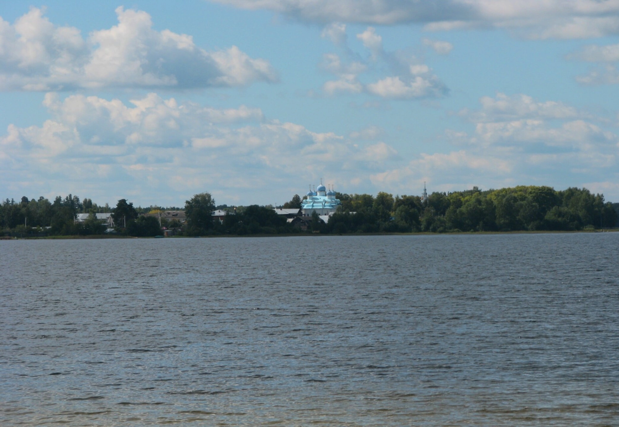 На представленной фотографии запечатлена величественная Церковь Преображения Господня, являющаяся частью ансамбля Святоезерского Иверского монастыря, расположенного в селе Мугреевском Южского района Ивановской области. Храм возвышается на живописном берегу Святого озера, создавая гармоничное единство православной архитектуры и природной красоты.