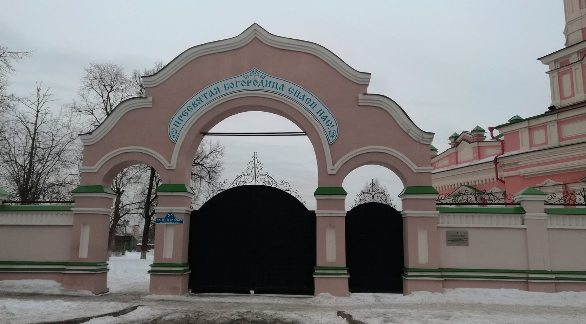 Архитектурный ансамбль монастыря представляет собой характерный образец русского церковного зодчества. Святые врата, изображенные на фотографии, являются не только функциональным элементом монастырского комплекса, но и важным символическим объектом, обозначающим переход от мирской суеты к духовной жизни. Надвратная икона и молитвенная надпись служат благословением для всех входящих в обитель.