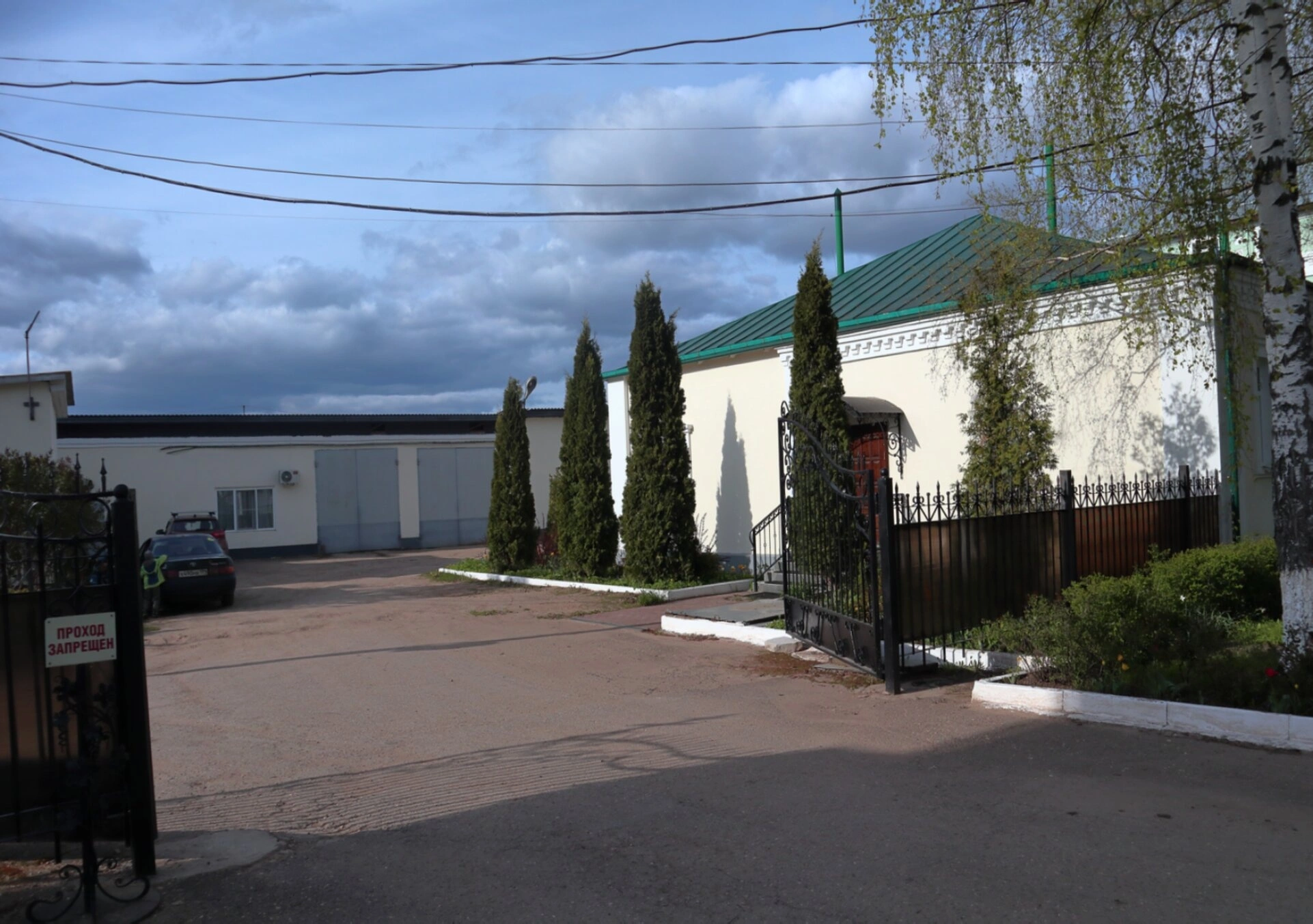 За вратами простирается ухоженная асфальтированная площадка, на которой стоит автомобиль — свидетельство современной жизни монастыря, гармонично сочетающейся с многовековыми традициями. С правой стороны от входа взгляд приковывает ряд высоких, стройных туй, которые ведут к монастырскому зданию, узнаваемому по светлым стенам и зелёной кровле. Слева от врат виднеются иные хозяйственные и жилые строения обители.