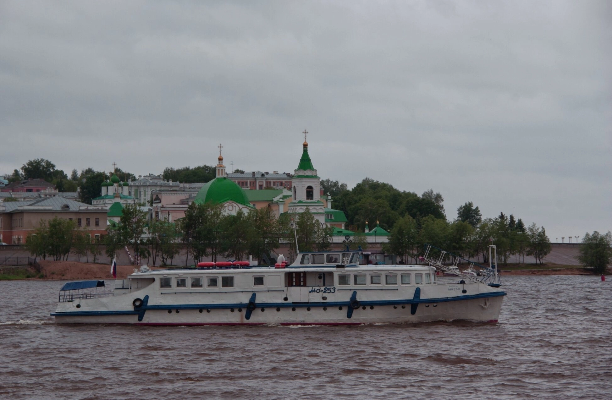 - Теплоход на Волге у Свято-Троицкого мужского монастыря в Чебоксарах