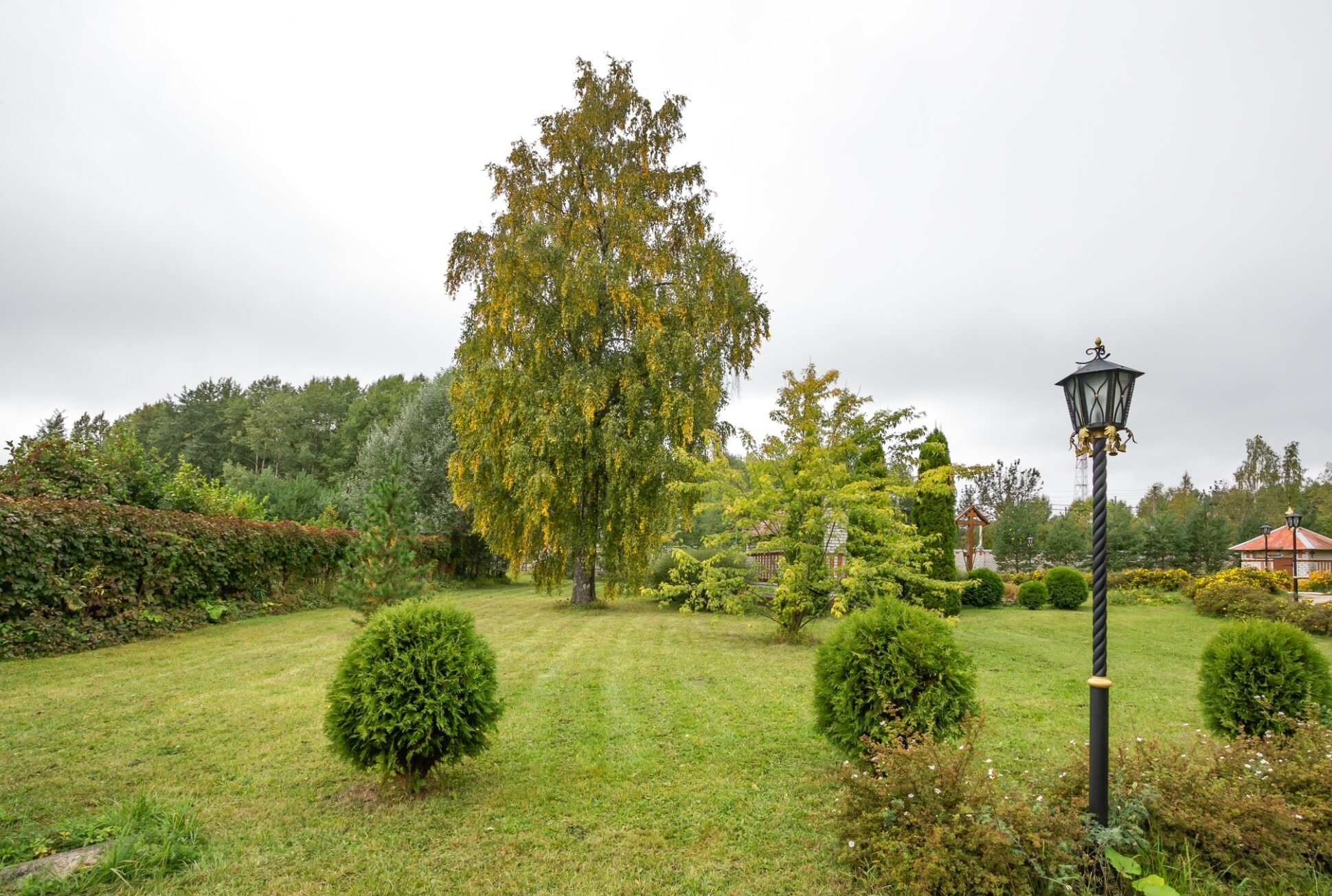 В центре композиции возвышается золотистая берёза, чья листва создает особую светоносную атмосферу, напоминающую о божественной благодати. На переднем плане расположены аккуратно подстриженные кусты туи, символизирующие духовное бодрствование и вечную жизнь. Старинный уличный фонарь, сохранившийся на территории монастыря, служит напоминанием о пути ко Христу, который есть Свет истинный.