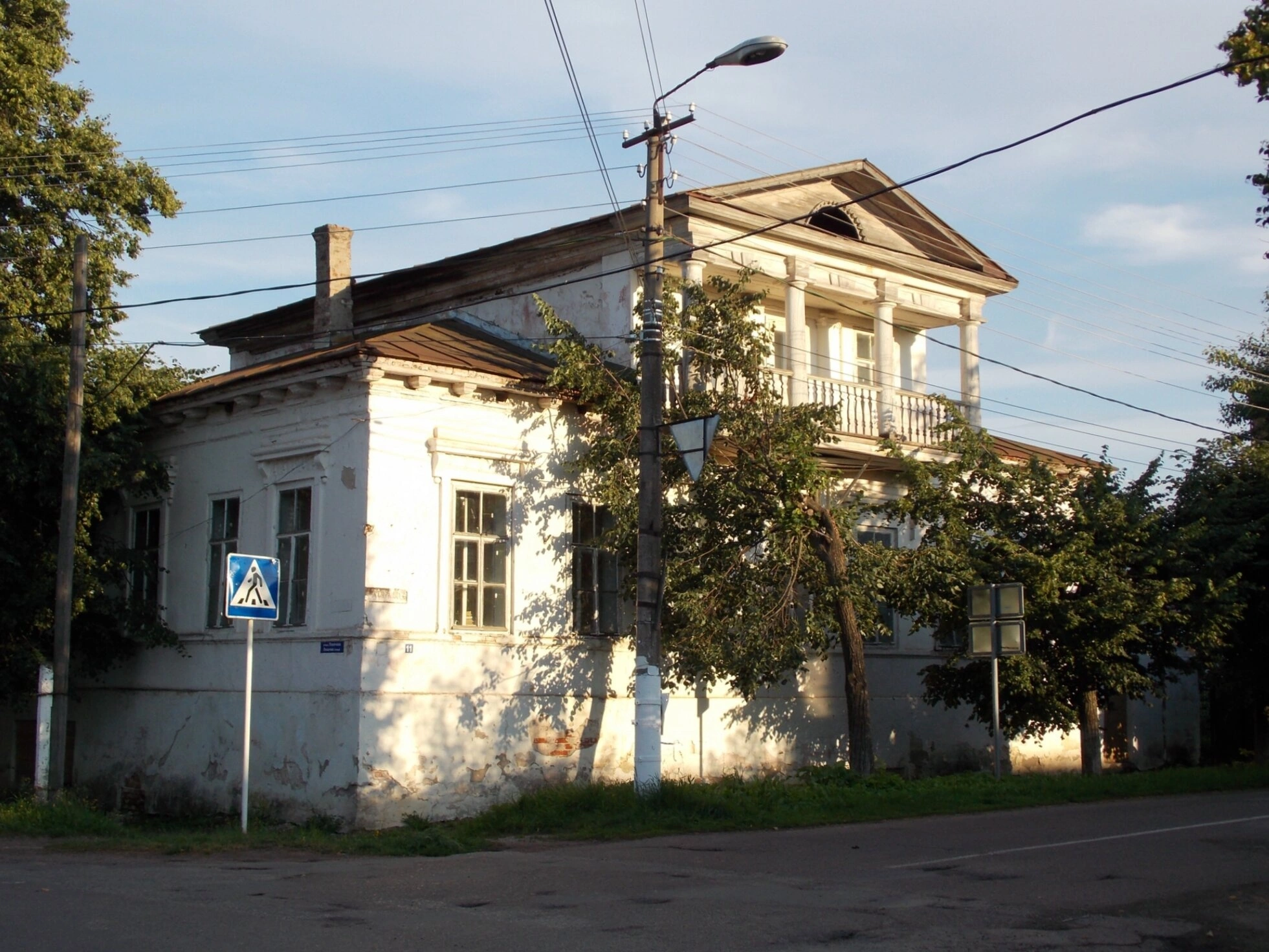 На представленной фотографии запечатлена Тихвинская церковь, расположенная в городе Козьмодемьянске по улице Свердлова. Это старинное двухэтажное здание, выполненное в традициях русской храмовой архитектуры. Фасад храма украшен классическим портиком с колоннами, поддерживающими балкон, и увенчан треугольным фронтоном, что придает сооружению благородный и строгий облик.