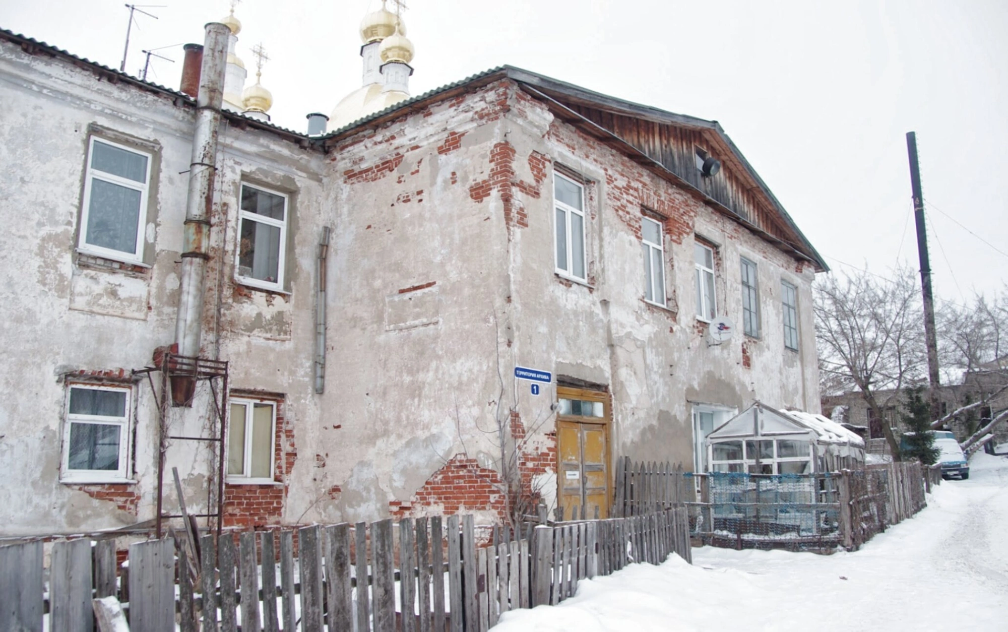 Двухэтажное кирпичное здание трапезной представляет собой характерный образец русской церковной архитектуры. На снимке хорошо просматривается монументальный объем постройки, выполненной в традициях православного зодчества. Фасад здания имеет строгое оформление, соответствующее назначению сооружения.