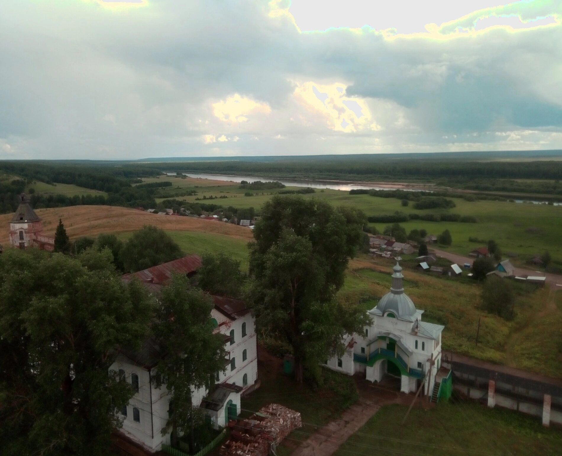 На представленной фотографии запечатлён величественный ансамбль Троице-Стефанова Ульяновского мужского монастыря, одной из главных православных святынь Республики Коми. Монастырь, расположенный в живописной местности на берегу реки Вычегды, был основан в конце XVII века учеником и преемником святителя Стефана Пермского — иеромонахом Филаретом. Своё настоящее имя обитель получила в честь преподобного Стефана Пермского и во славу Святой Живоначальной Троицы.